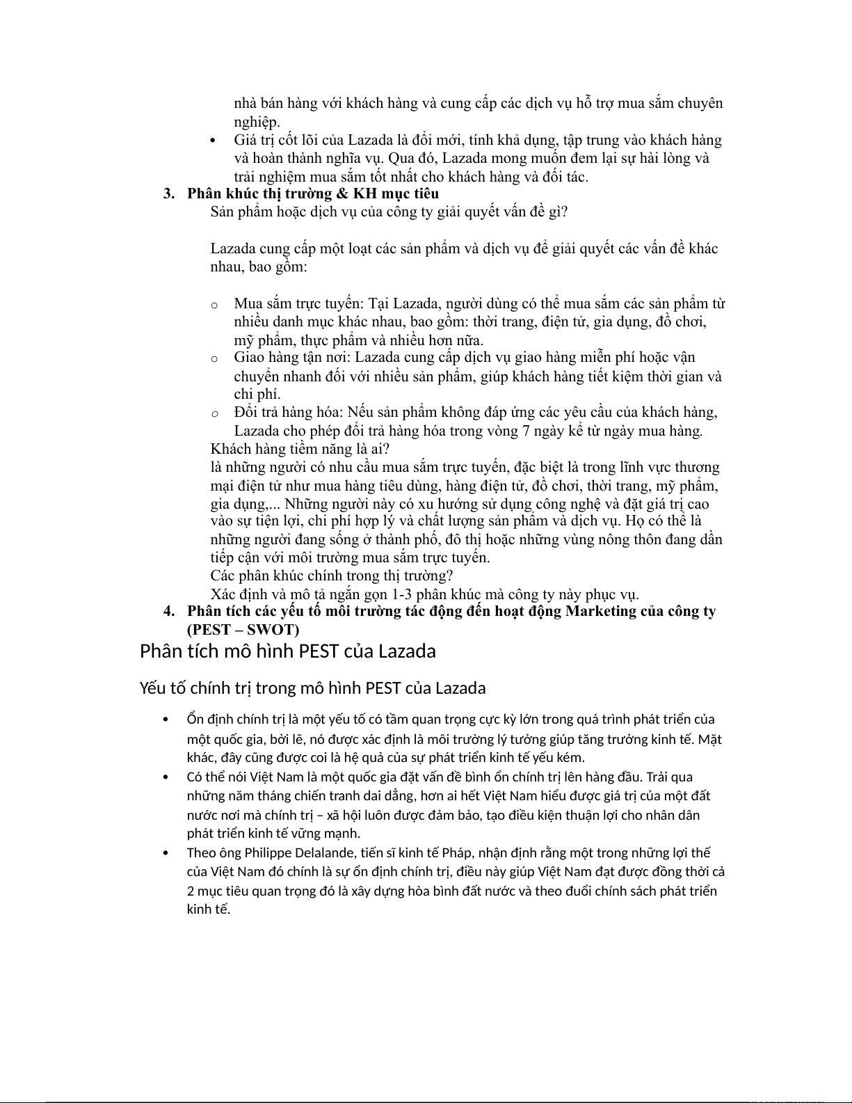 Kênh phân phối : Lazada có nhiều kênh phân phối, bao gồm: o Trang web Lazada.vn o