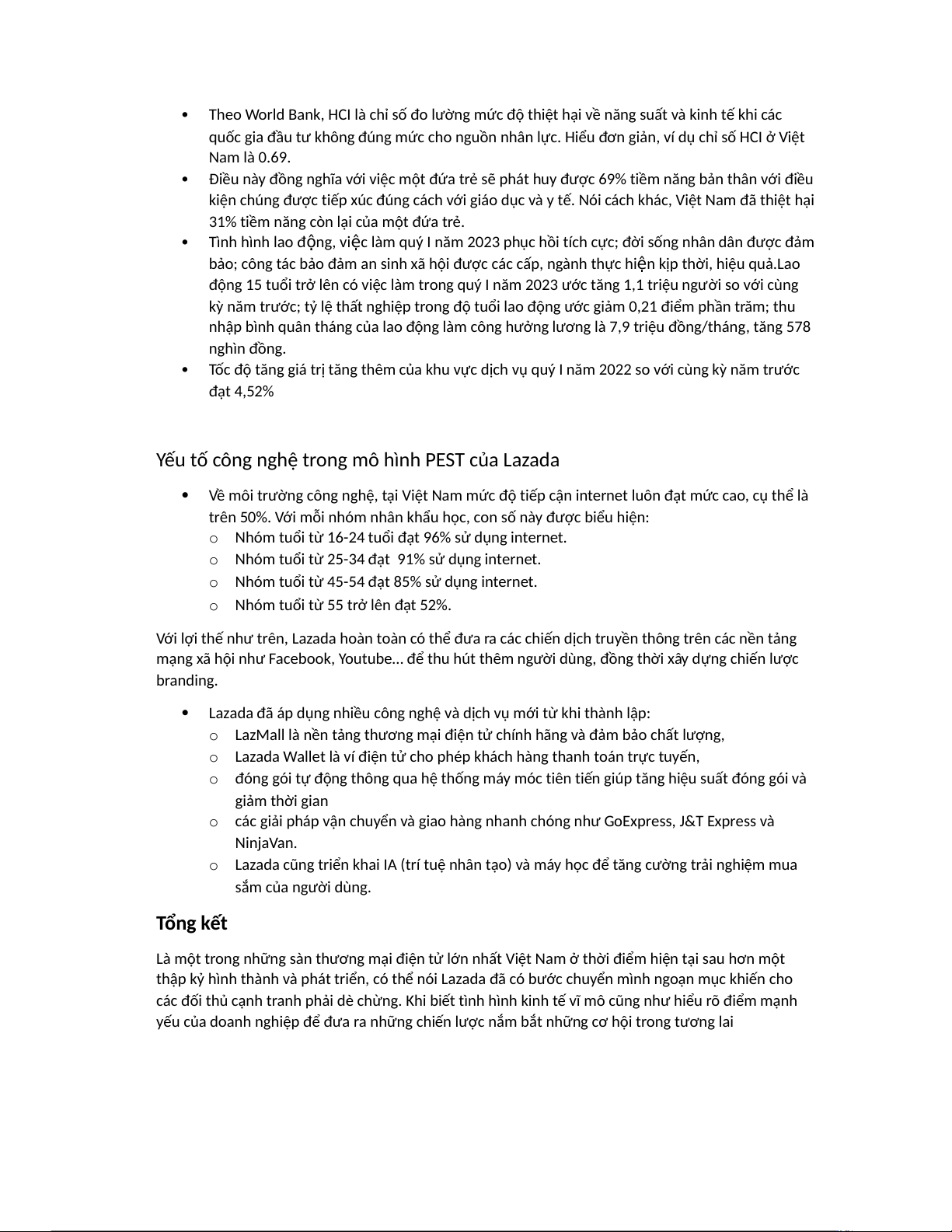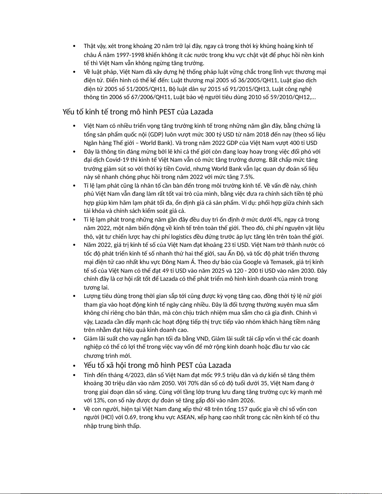 Yếu tố kinh tế trong mô hình PEST của Lazada