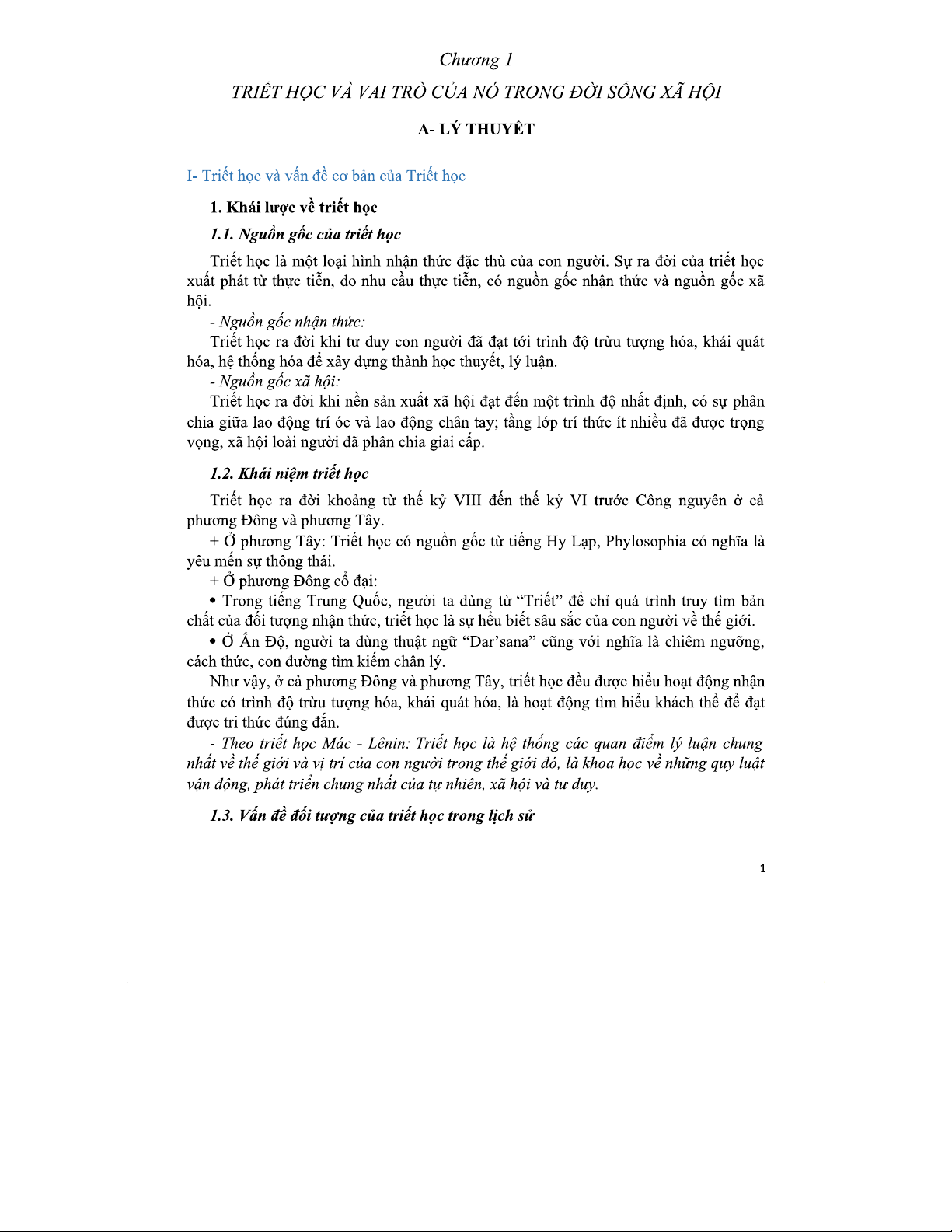 CÂU HỎI TRẮC NGHIỆM CHƯƠNG 1- Triet Mac-Lenin