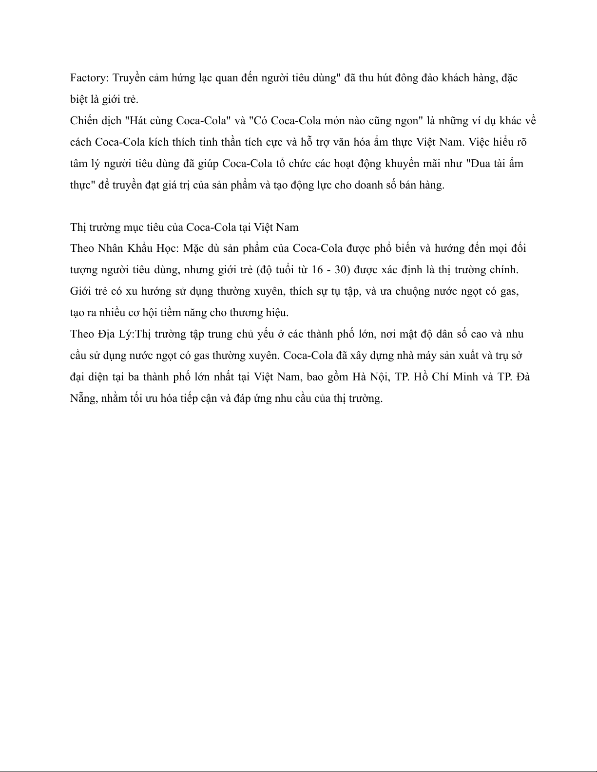 Thị trường mục tiêu của Coca-Cola tại Việt Nam