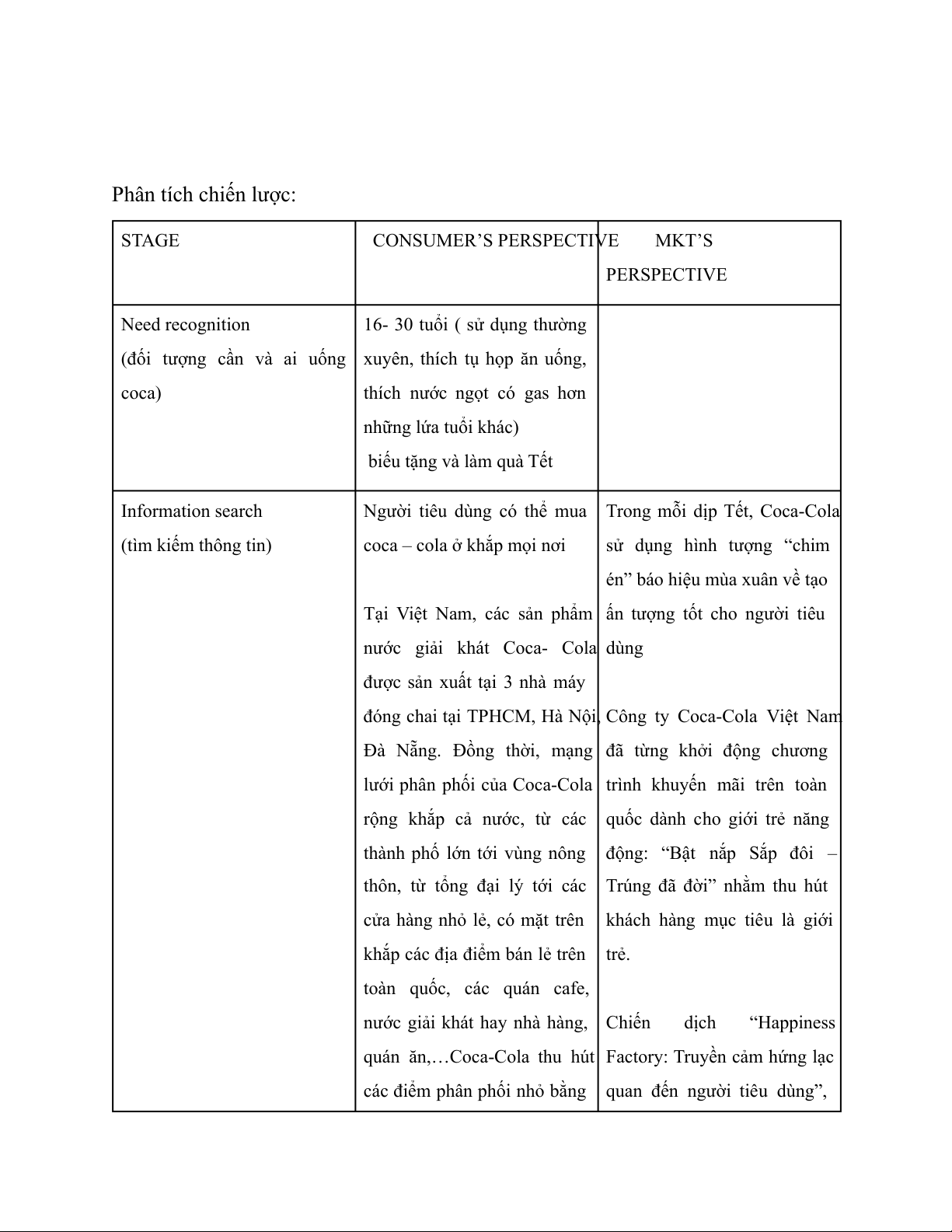 Nẵng, nhằm tối ưu hóa tiếp cận và đáp ứng nhu cầu của thị trường. Phân tích chiến lược: STAGE CONSUMER’S PERSPECTIVE MKT’S PERSPECTIVE Need recognition