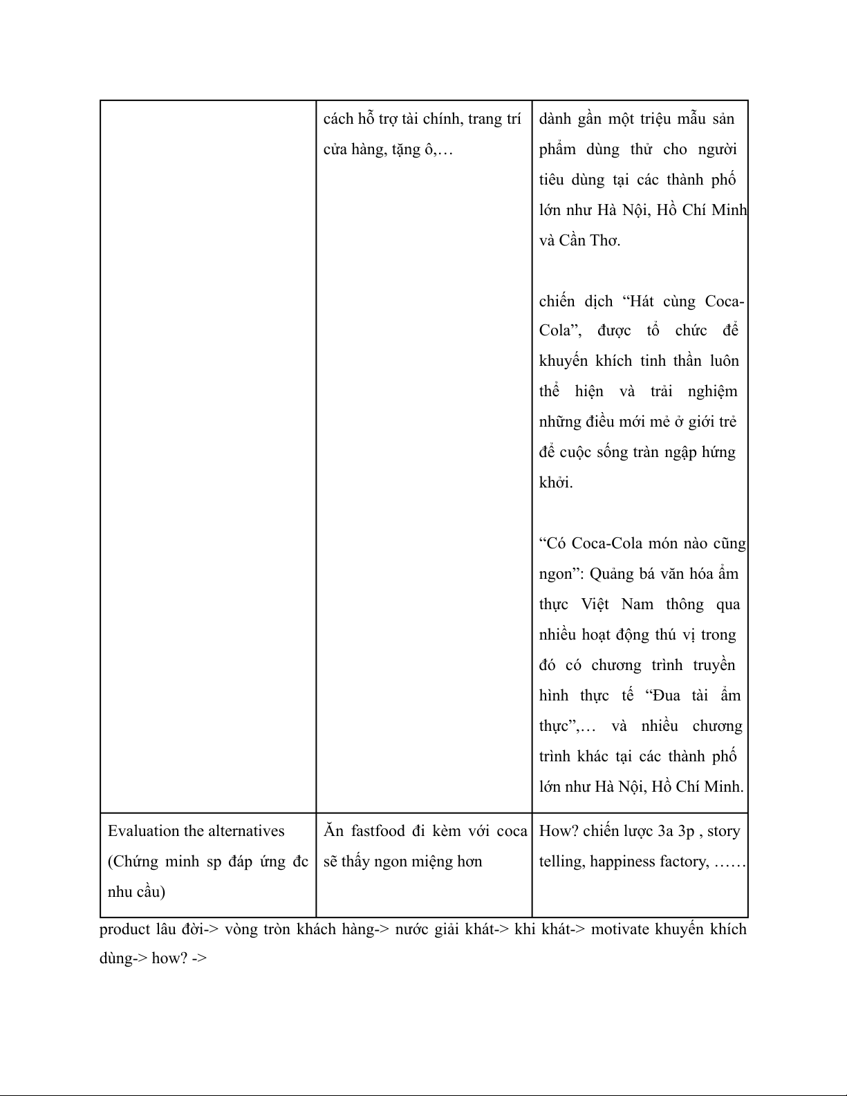 product lâu đời-> vòng tròn khách hàng-> nước giải khát-> khi khát-> motivate khuyến khích dùng-> how? ->