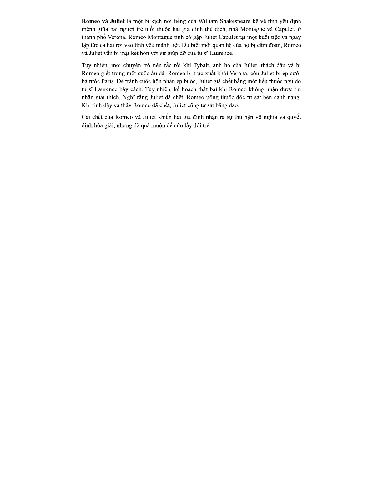 Tóm tắt vở bi kịch "Romeo và Juliet" của Shakespeare