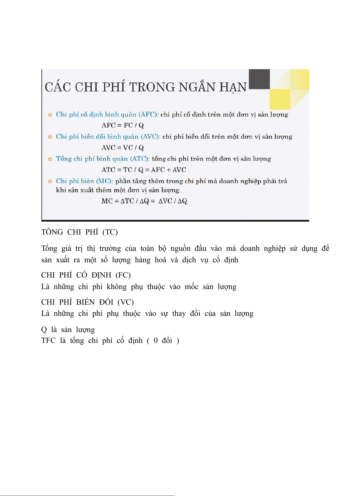 Là những chi phí phụ thuộc vào sự thay đổi của sản lượng Q là sản lượng