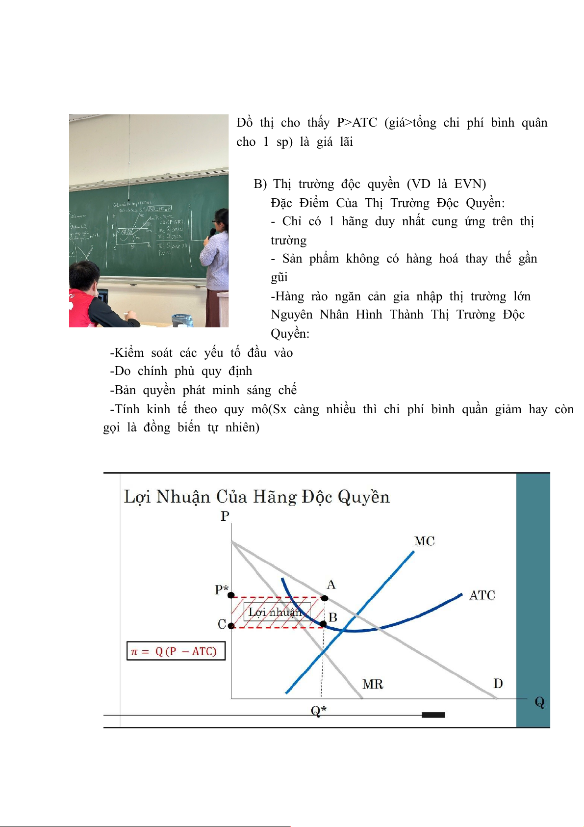 Đồ thị cho thấy P>ATC (giá>tổng chi phí bình quân cho 1 sp) là giá lãi
