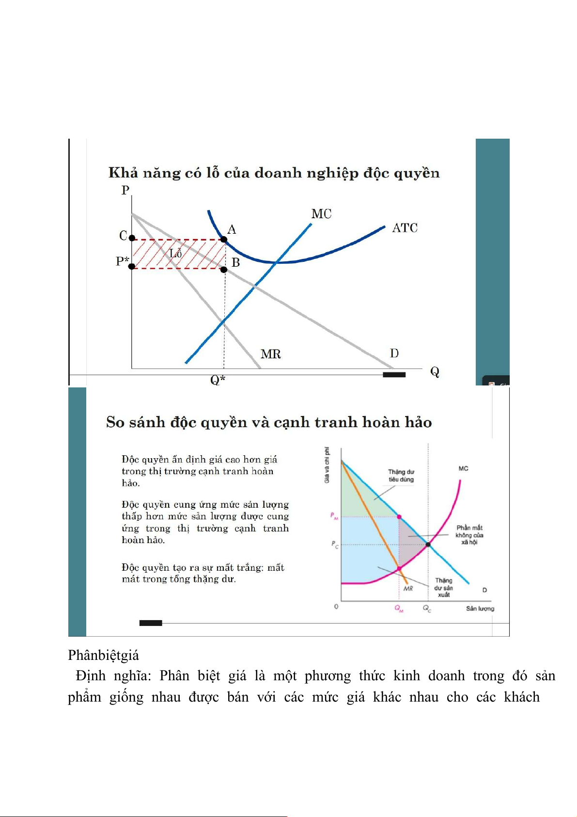 - Nhiều DN quy mô nhỏ nhưng SP giống nhau thì là cạnh tranh hoàn hảo