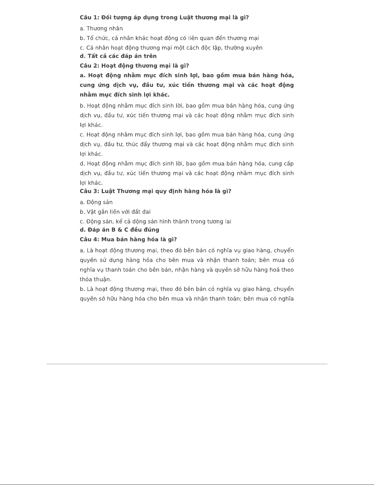 Tổng hợp 100 câu hỏi trắc nghiệm Luật Thương mại (TN - Phần Luật Thương mại)