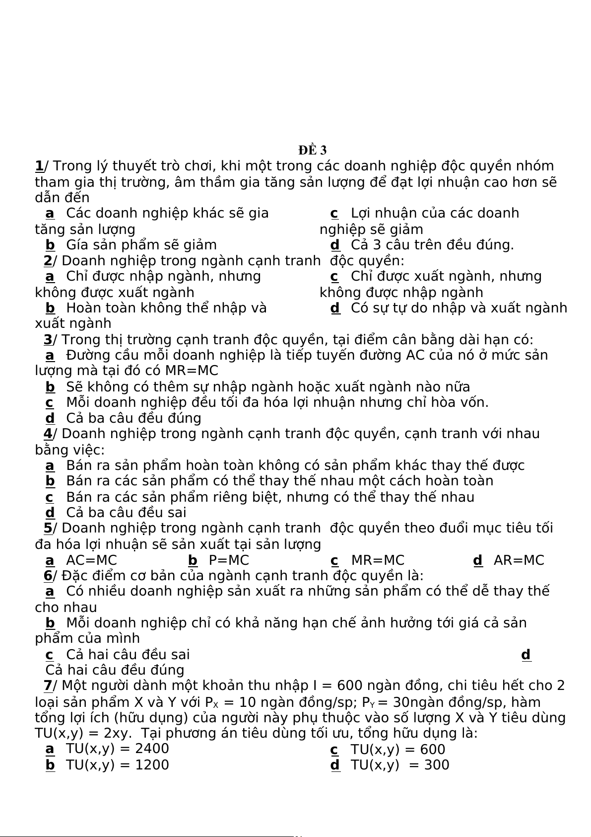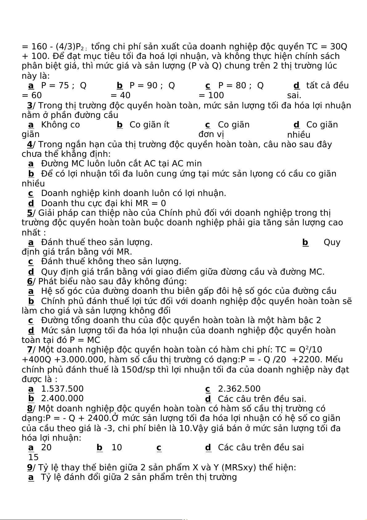 21/ Một doanh nghiệp độc quyền hoàn toàn có hàm chi phí: TC = Q 2 -5Q