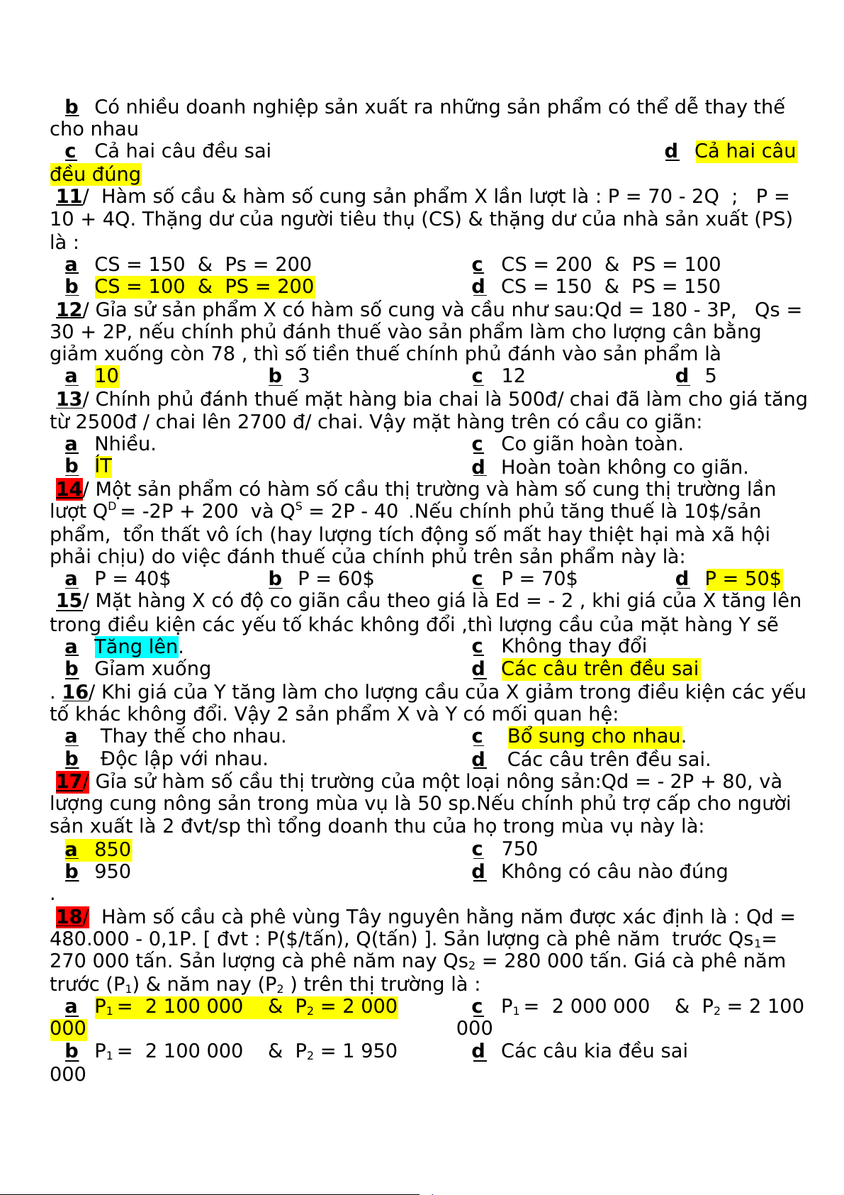 11/ Hàm số cầu & hàm số cung sản phẩm X lần lượt là : P = 70 - 2Q ; P =