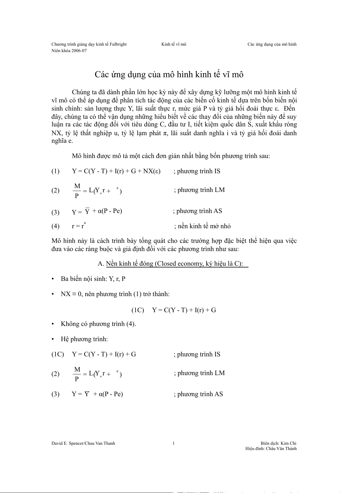 David E. Spencer/Chau Van Thanh 1 Biên dịch: Kim Chi