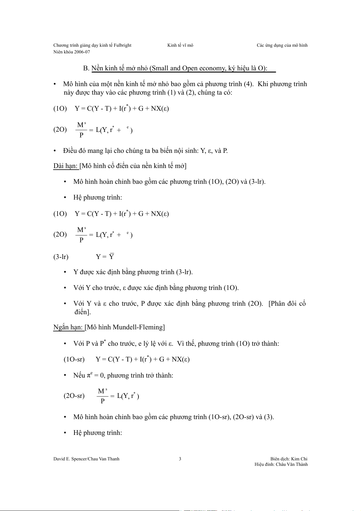 (1O) Y = C(Y - T) + I(r*) + G + NX(ε) M s (2O) L Y ( , r* e = + π ) P (3-lr) Y = Y