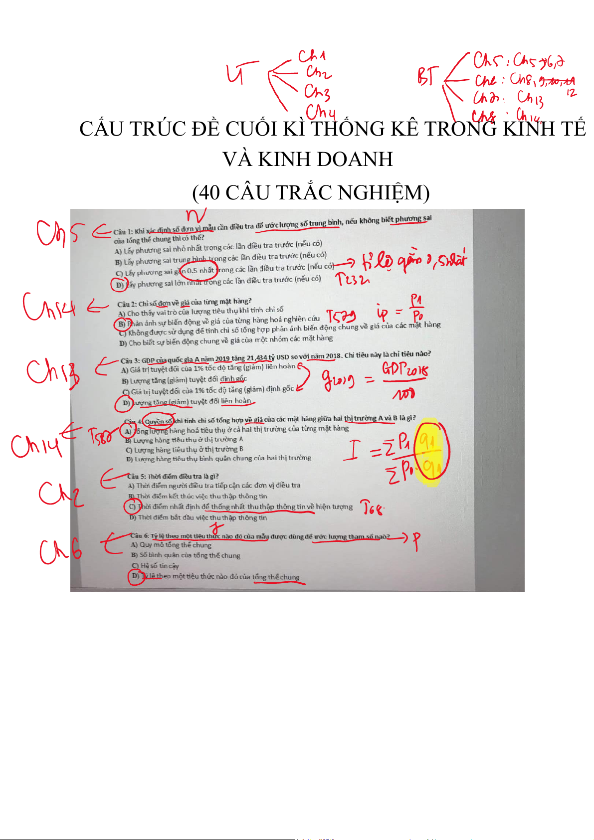 CẤU TRÚC ĐỀ CUỐI KÌ THỐNG KÊ TRONG KINH TẾ VÀ KINH DOANH (40 CÂU TRẮC NGHIỆM)