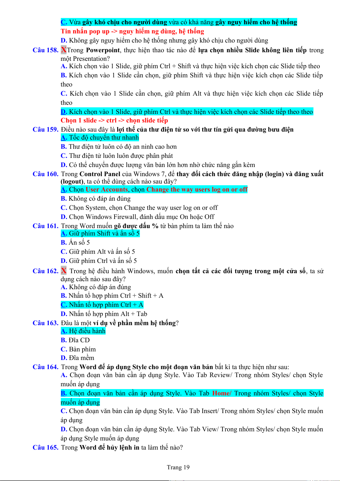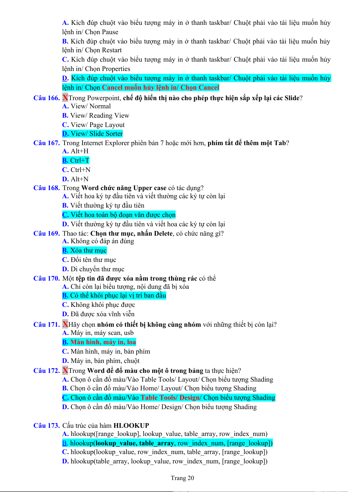 Câu 165. Trong Word để hủy lệnh in ta làm thế nào? Trang 19
