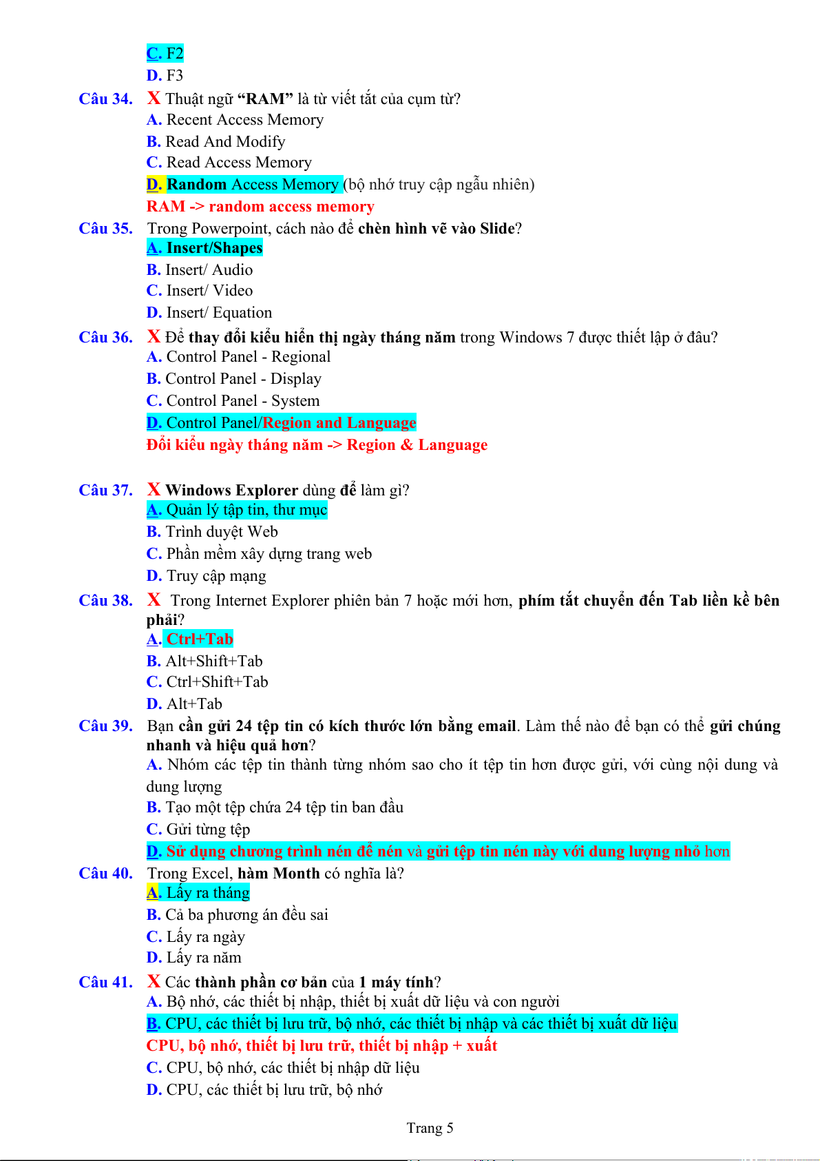 TỔNG HỢP 400 CÂU HỎI ÔN TẬP MÔN TIN HỌC Câu 1.