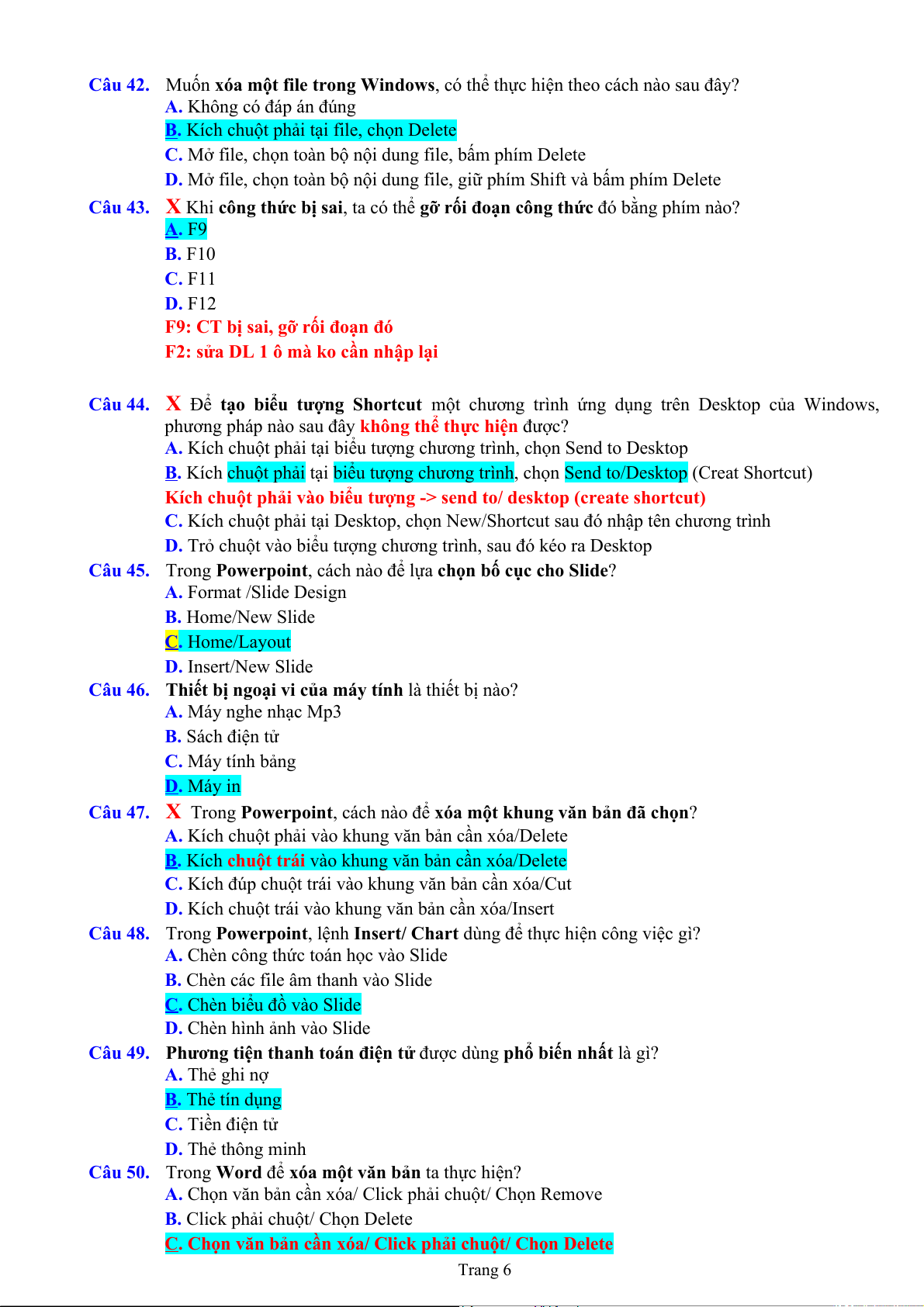 B. Delete Sai -> ni là xóa từng cấy C. Back D. Redo Câu 7.