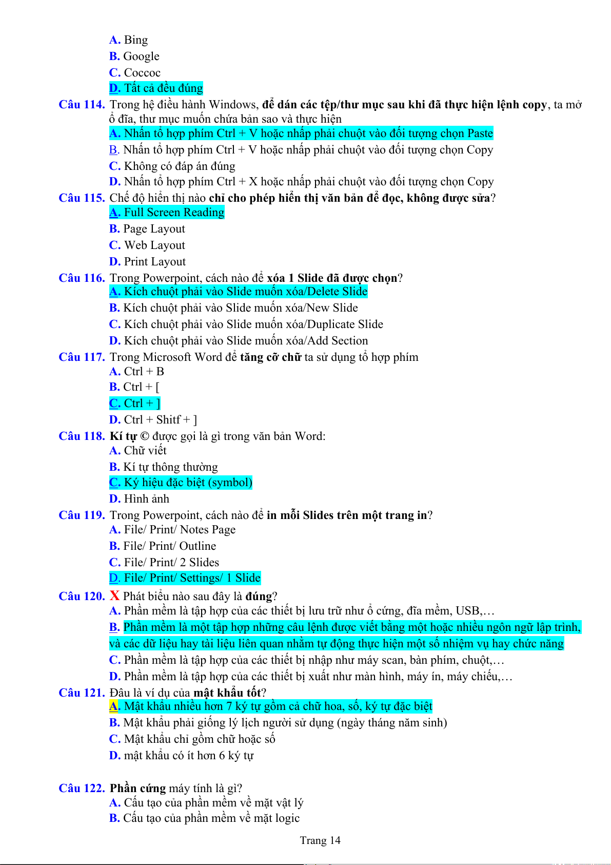 C. Bấm Ctrl + L, chọn Lock Computer D. Nhấn nút Power Câu 3.
