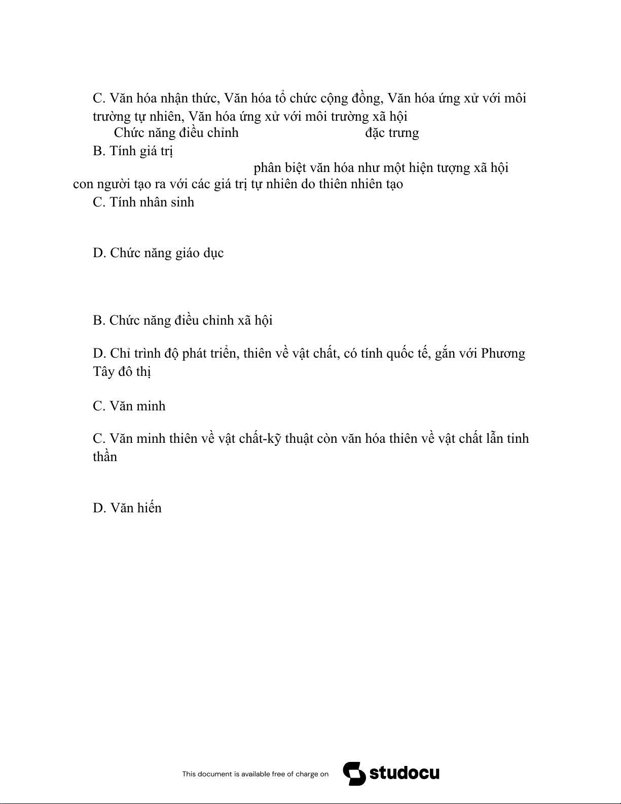 Câu 7: Yếu tố nào sau đây mang tính quốc tế? C. Văn minh