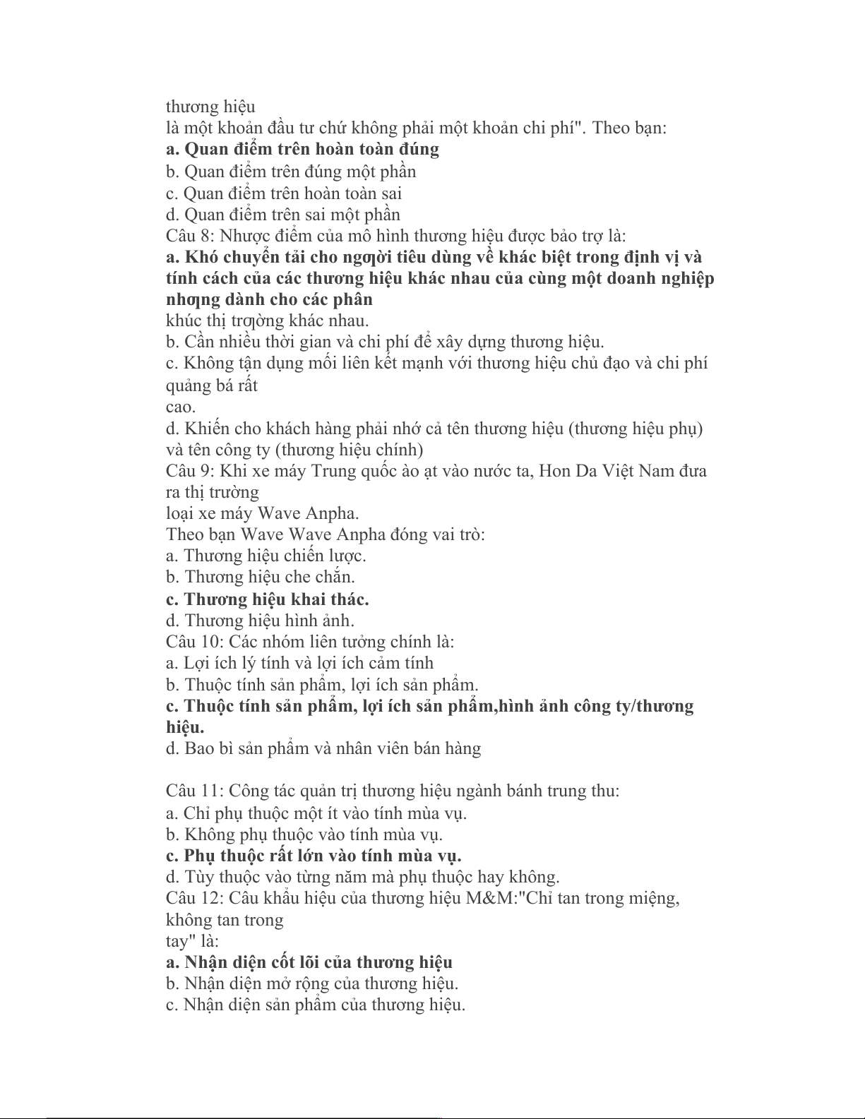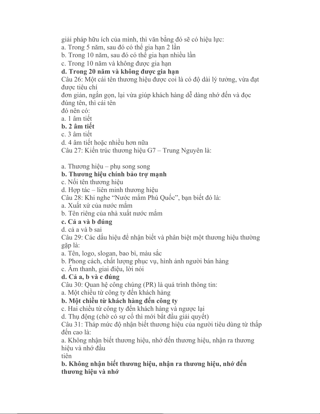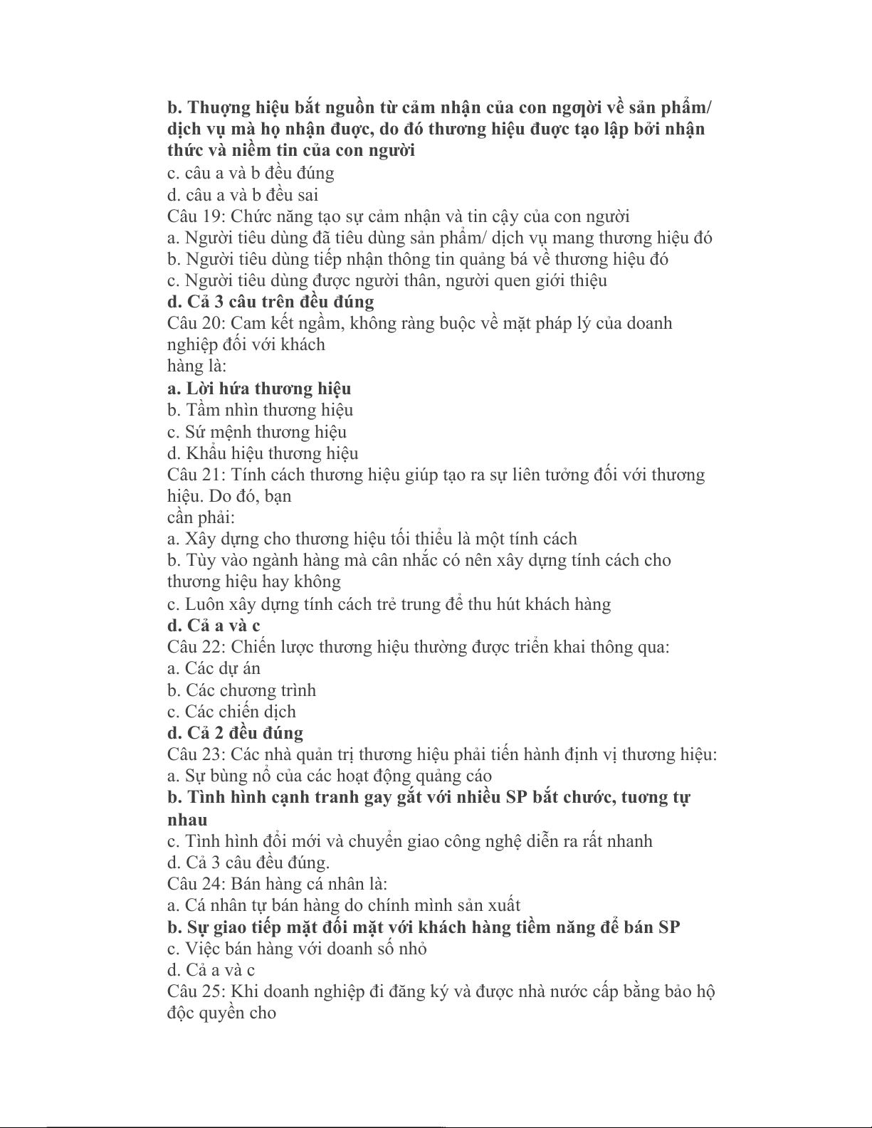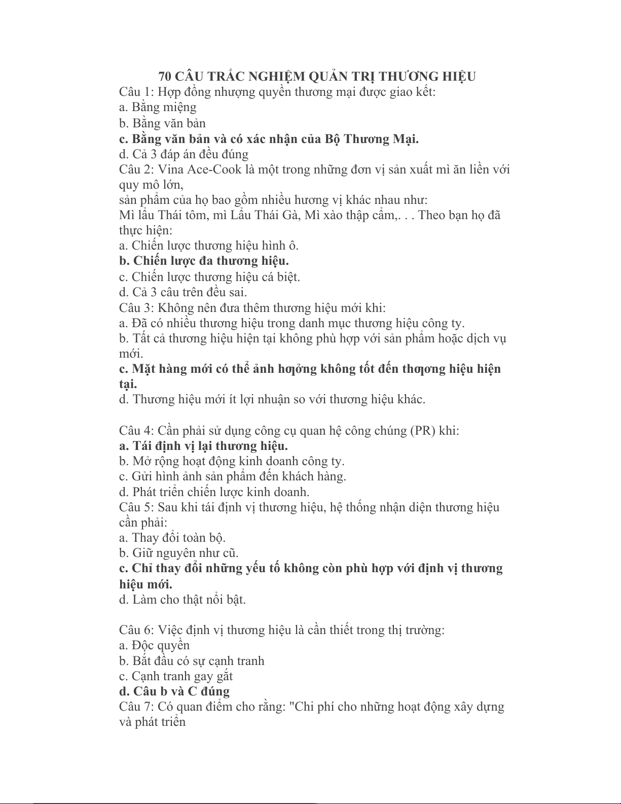 70 CÂU TRẮC NGHIỆM QUẢN TRỊ THƯƠNG HIỆU