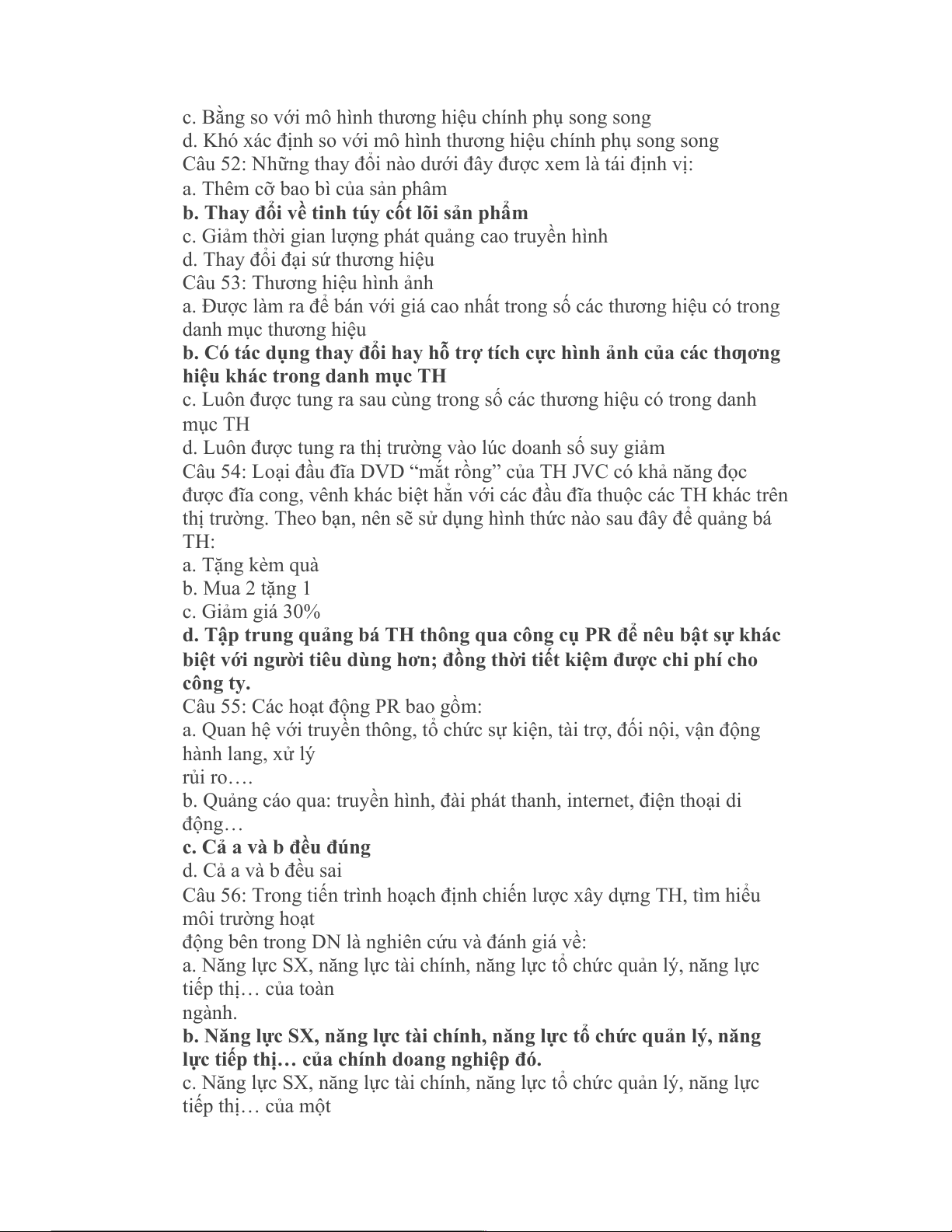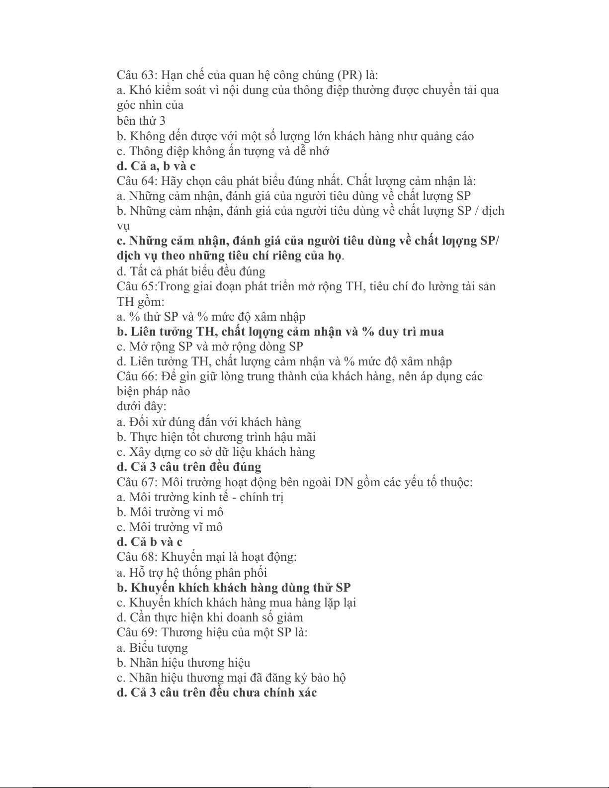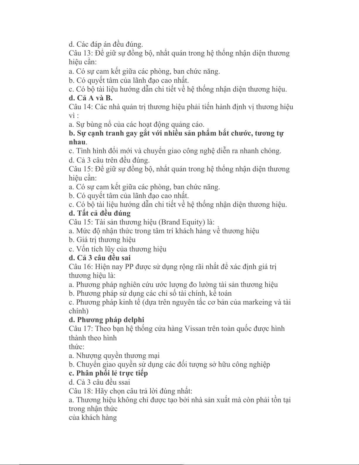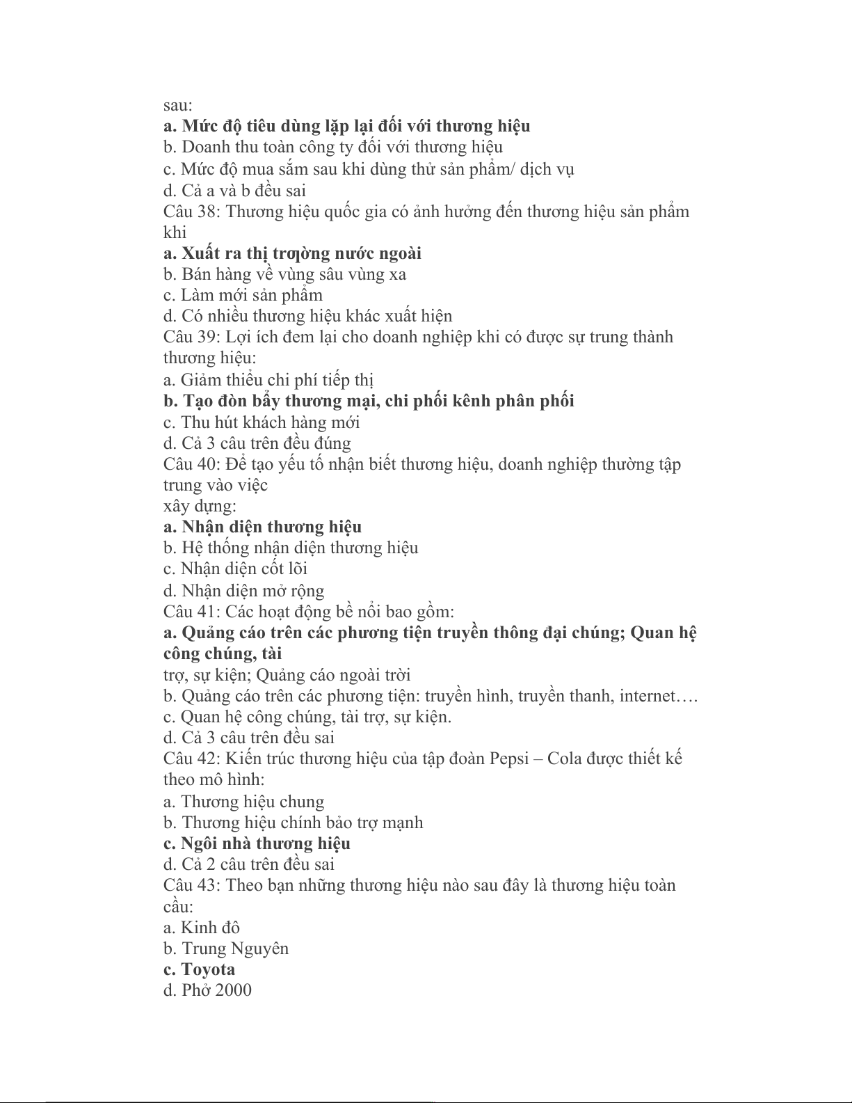 70 CÂU TRẮC NGHIỆM QUẢN TRỊ THƯƠNG HIỆU