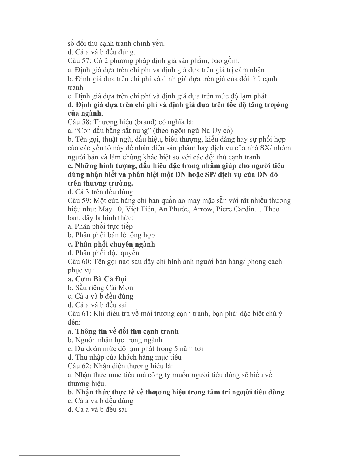 Câu 57: Có 2 phương pháp định giá sản phẩm, bao gồm: