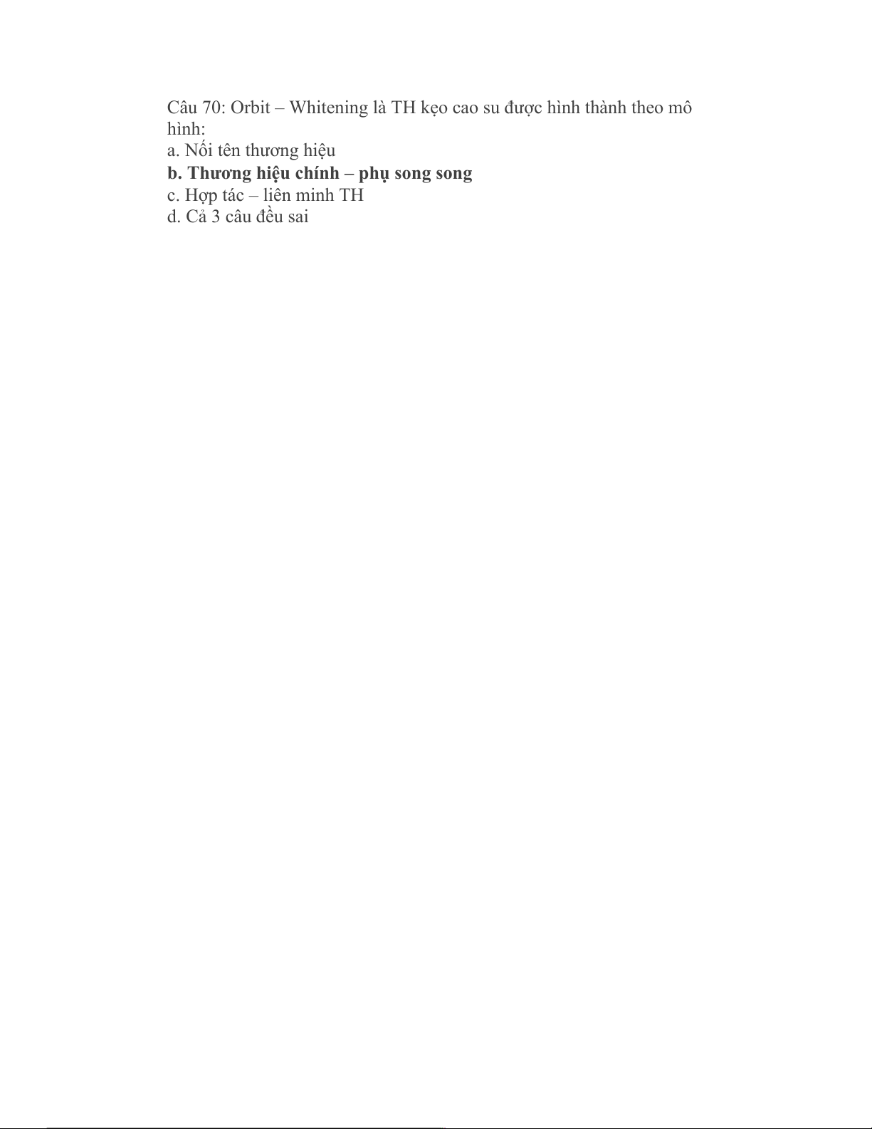 Câu 70: Orbit – Whitening là TH kẹo cao su được hình thành theo mô hình: a. Nối tên thương hiệu