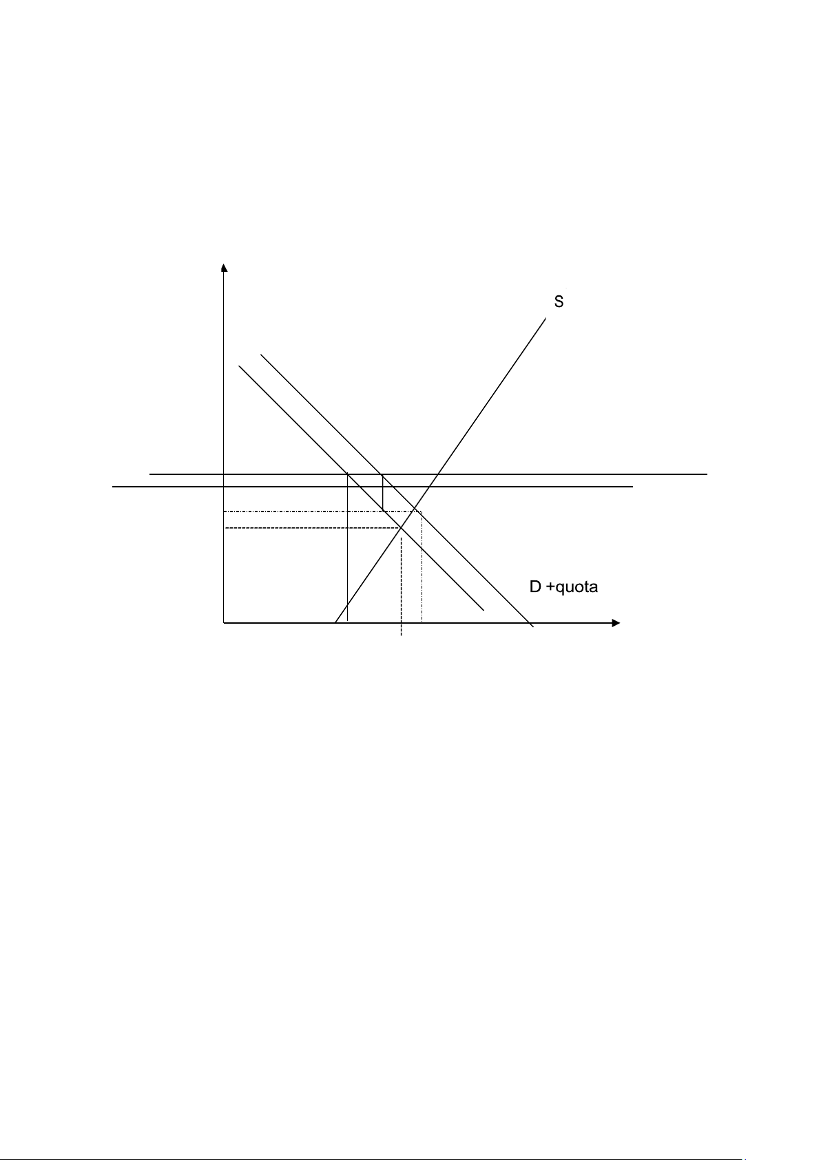 quota nhập khẩu với mức 6,4 tỷ pao. Khi đó phương trình đường cung thay đổi như sau: QS’ = QS + quota = 0,798P -6,156 + 6,4 QS’ = 0,798P + 0,244