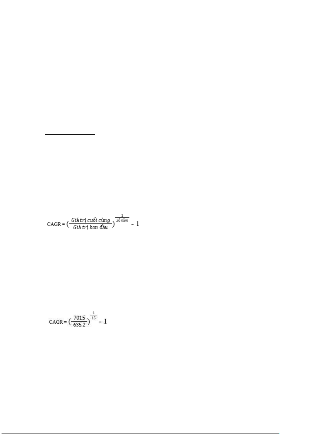 Công thức tính tốc độ tăng trưởng trung bình hàng năm (CAGR):