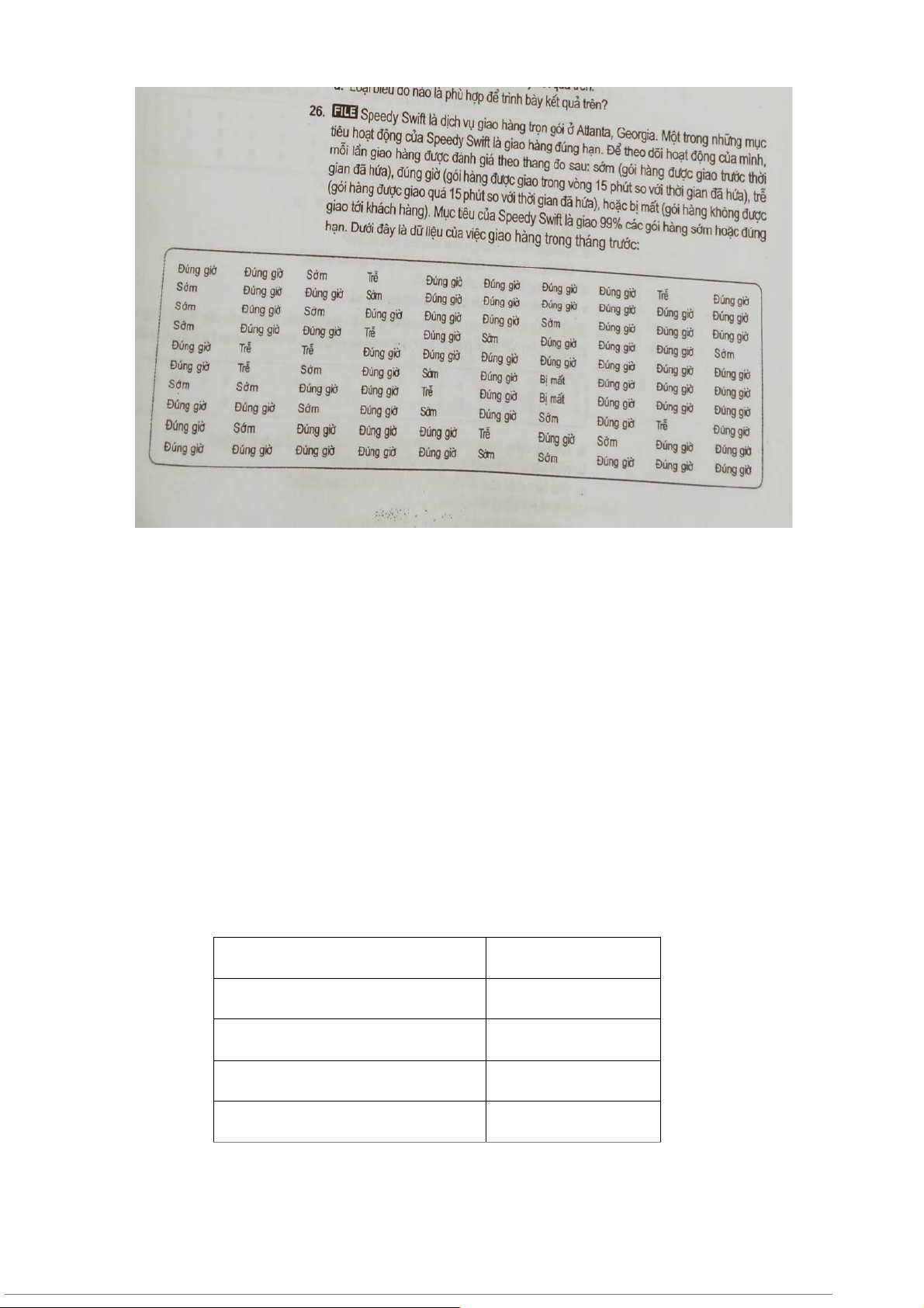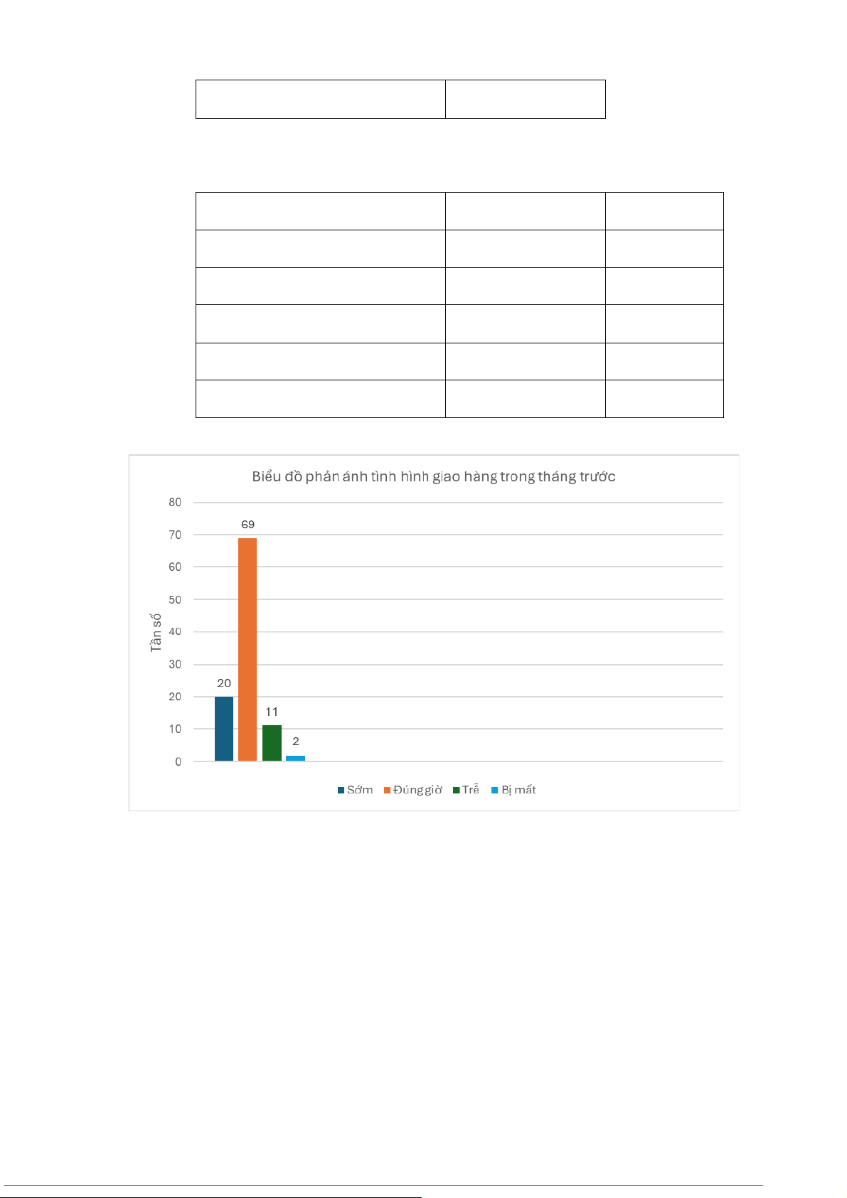 c, Xây dựng bảng tần suất phản ánh tình hình giao hàng của tháng trước