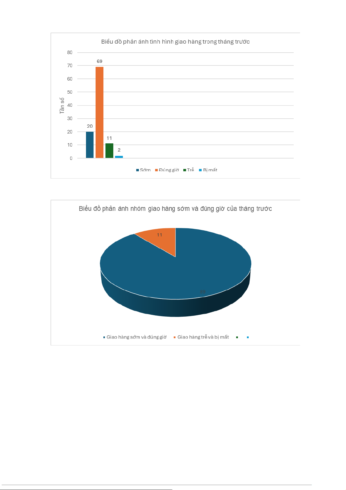 sớm. Tuy nhiên, tổng tỷ lệ giao hàng đúng giờ và sớm trong tháng trước chỉ đạt 89%.