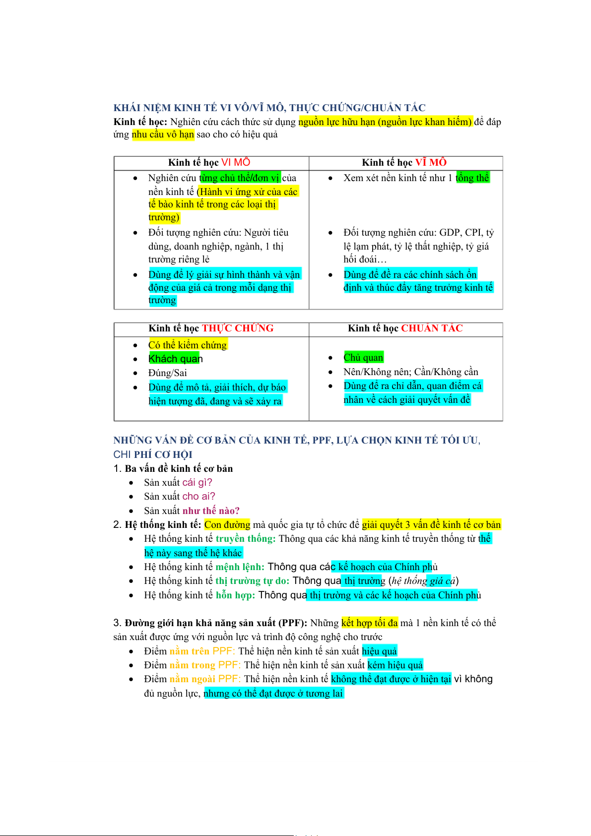 NHỮNG VẤN ĐỀ CƠ BẢN CỦA KINH TẾ, PPF, LỰA CHỌN KINH TẾ TỐI ƯU, CHI PHÍ CƠ HỘI