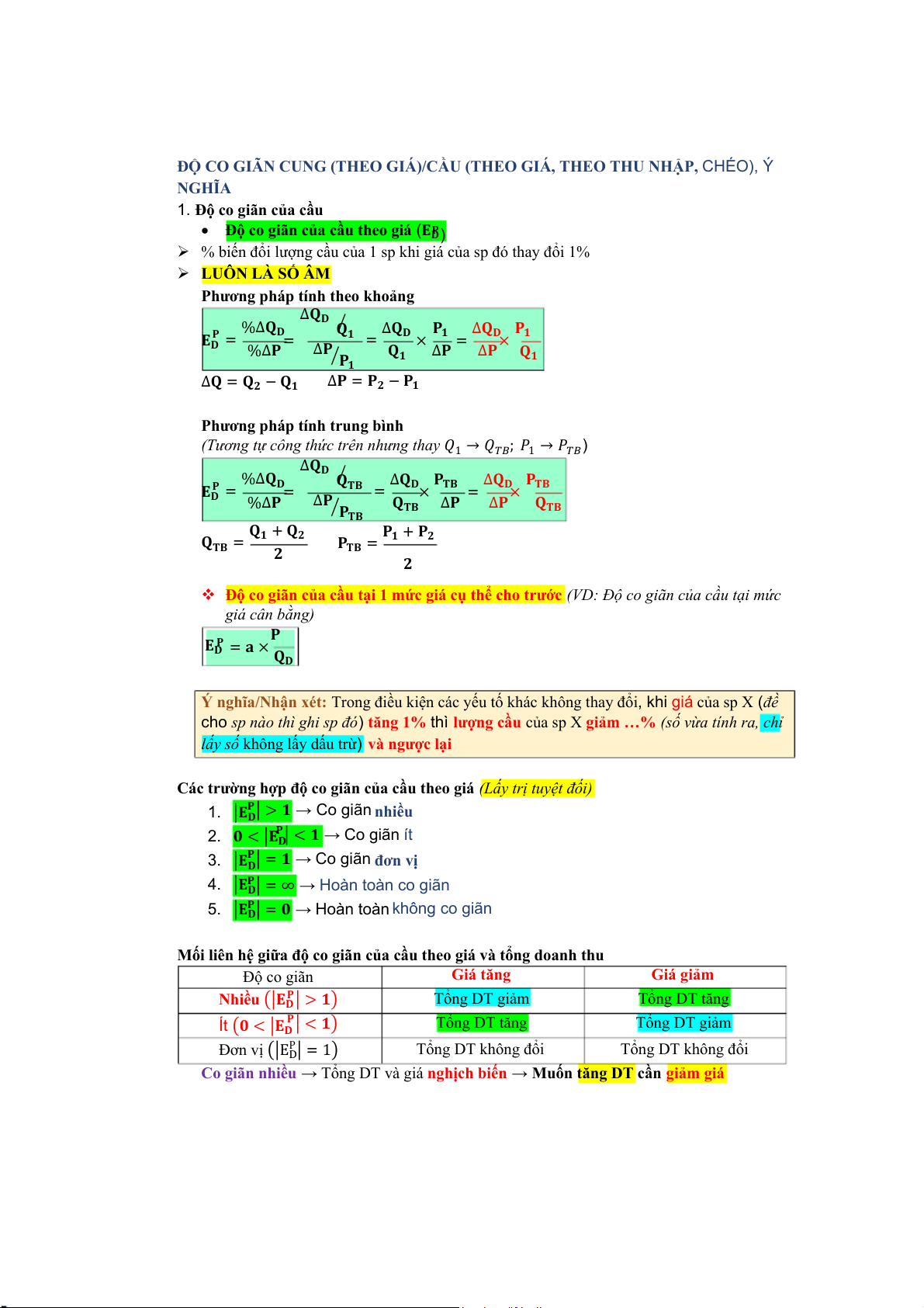 • Độ co giãn của cung theo giá (𝐄𝐒 𝐏)