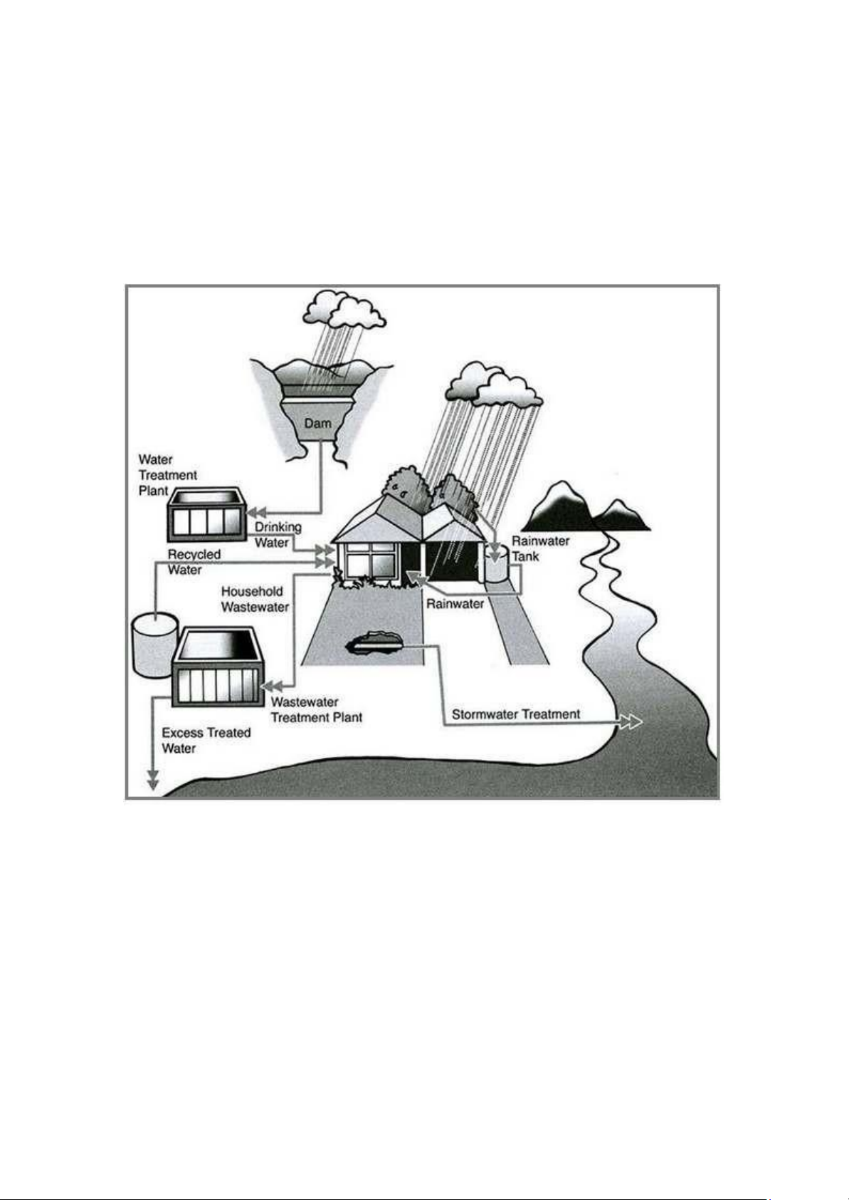 Overall, rainwater recycling process involves various interrelated phases including the use of the dam, treatment plant, water tank