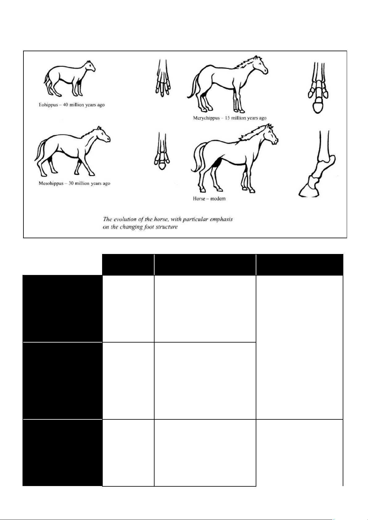 The diagrams below show the development of the horse over a period of 40 million years.