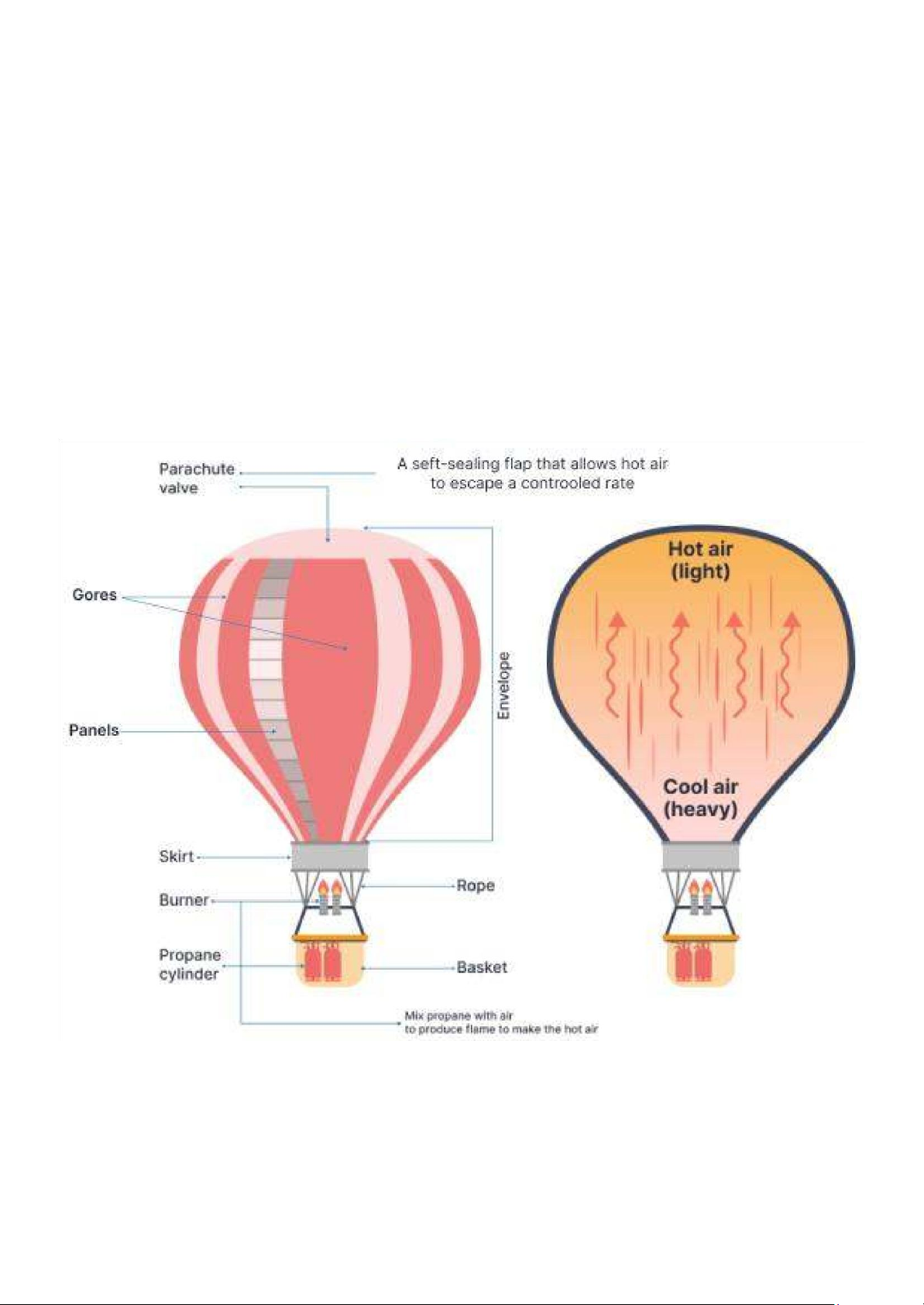 The picture below shows how a hot balloon works.