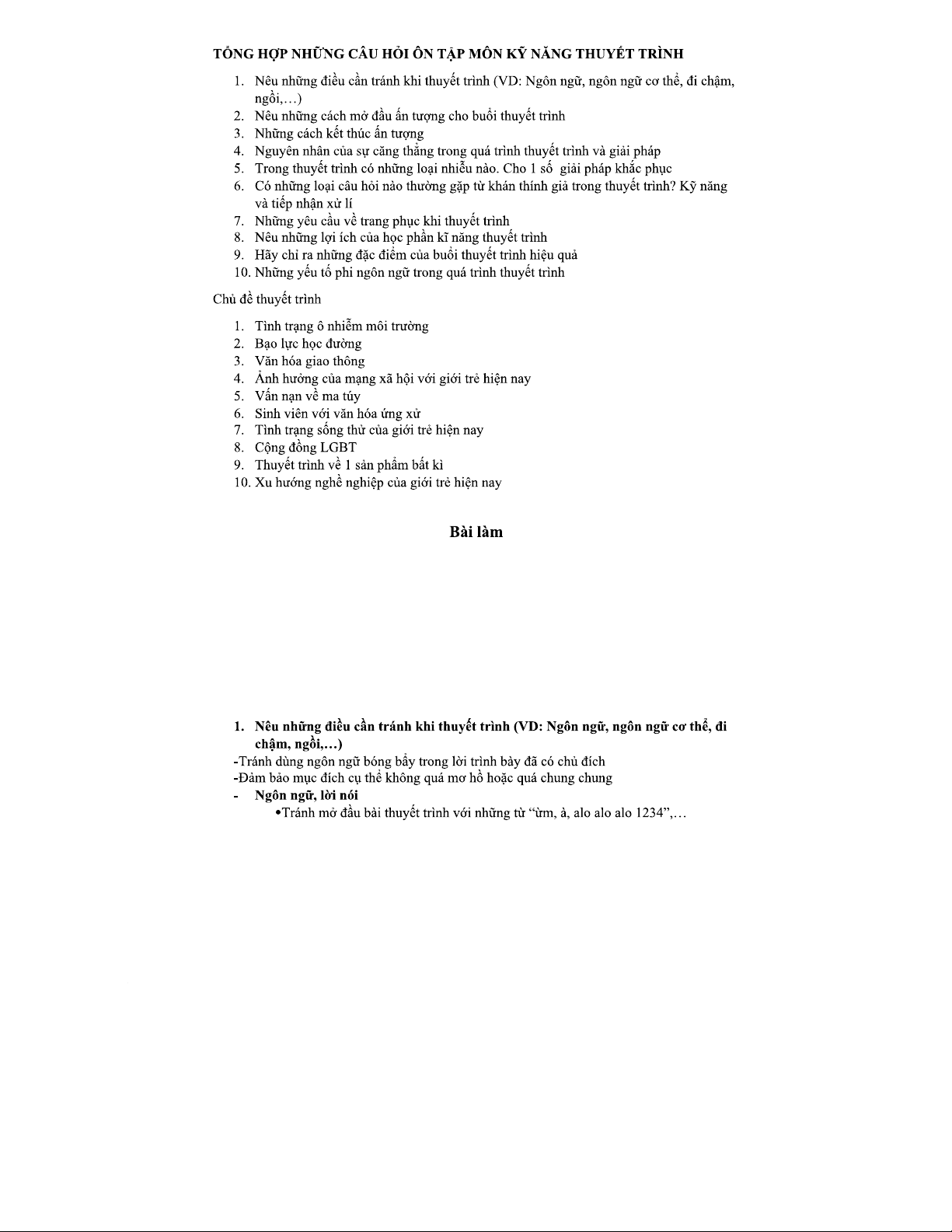 Tổng hợp câu hỏi ôn tập kỹ năng thuyết trình (Môn KỸ NĂNG THUYẾT TRÌNH)