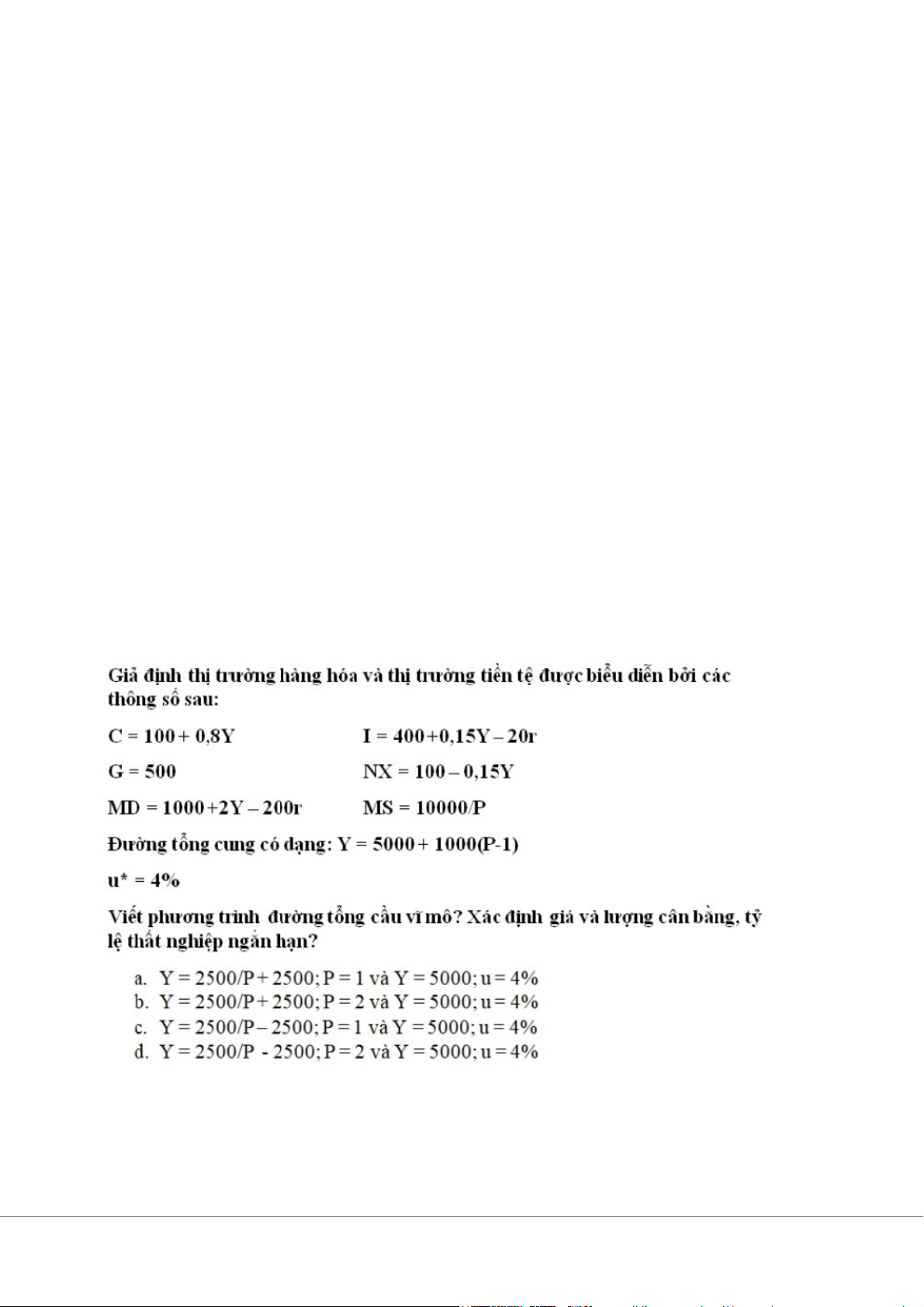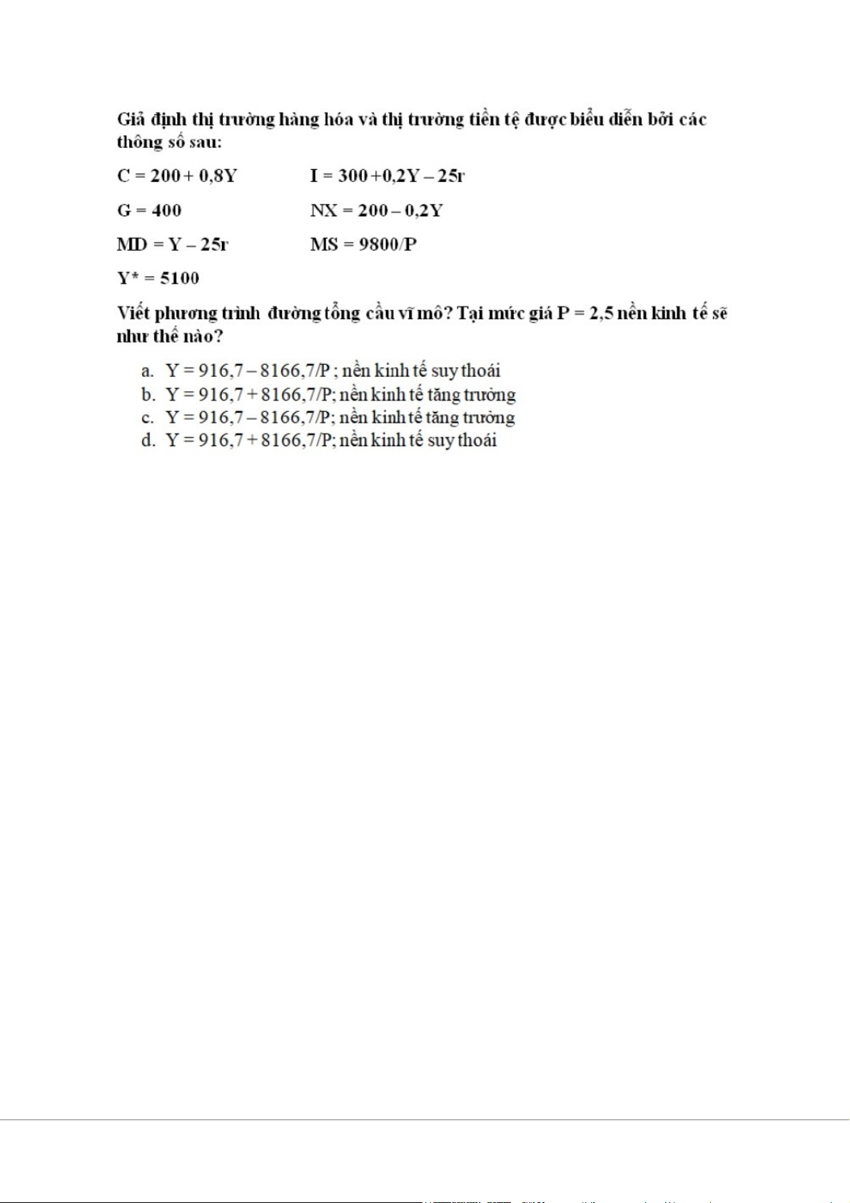4. Giả sử nền kinh tế có các thông số sau: