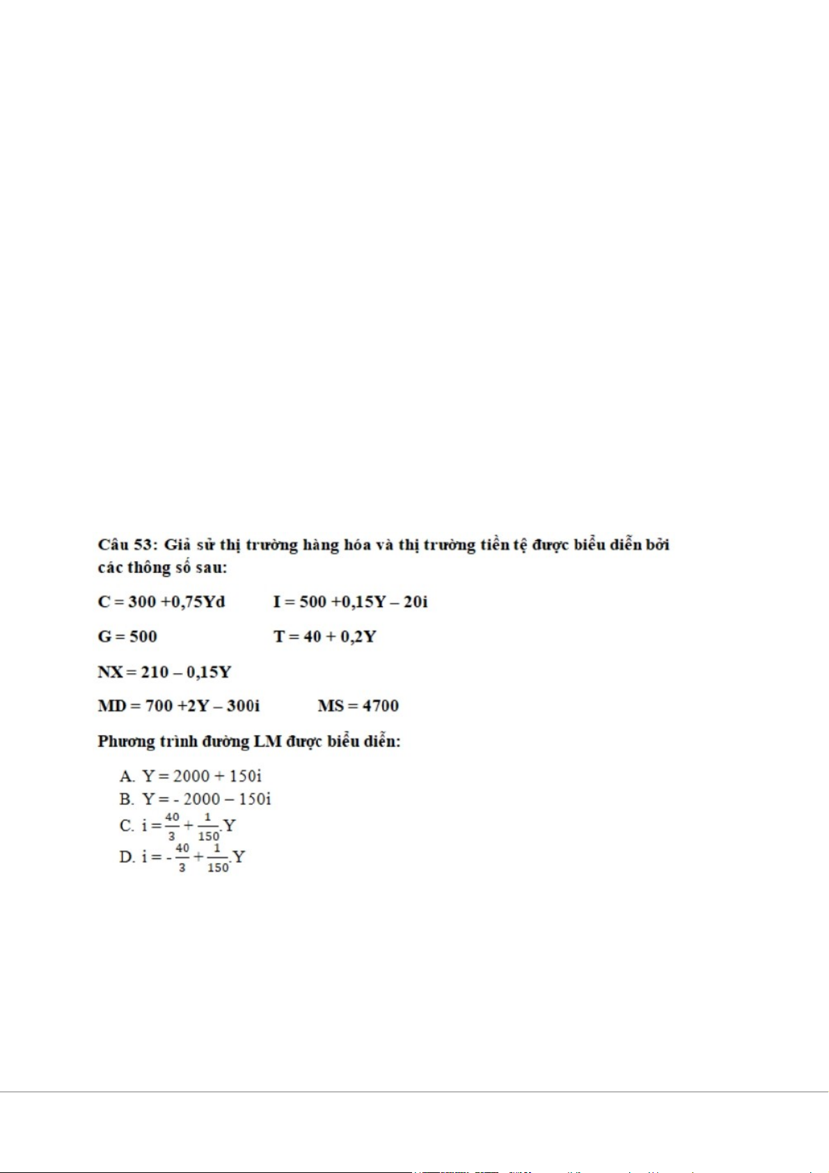 Phương trình đường LM: Y = 2000 + 150i