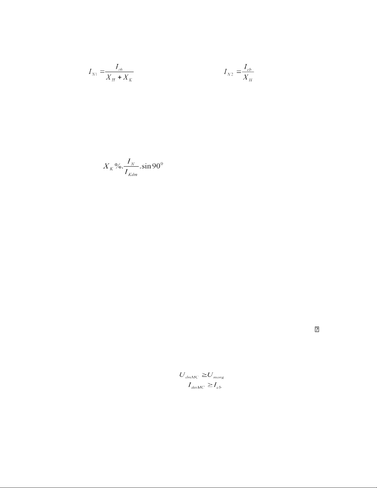 * Không đặt kháng điện: UTG = ΔU = IN2.Xdd