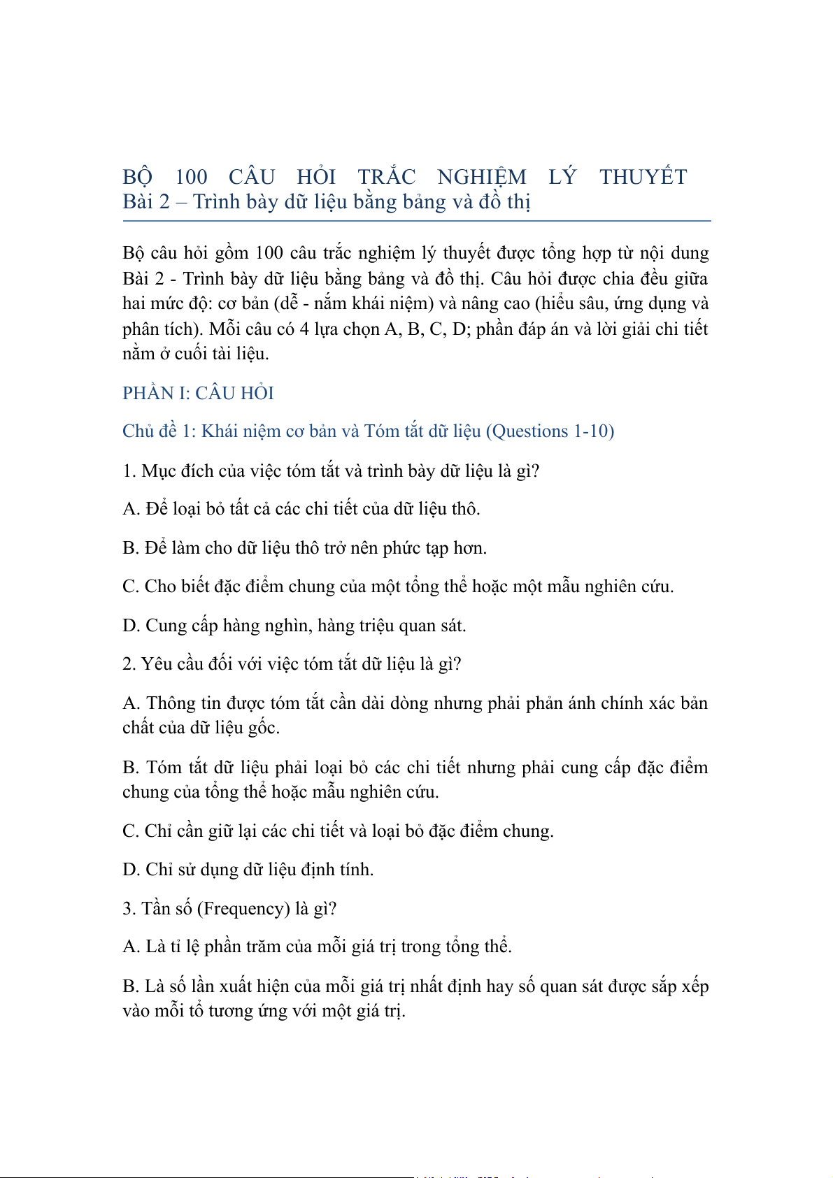 Chủ đề 3: Trình bày dữ liệu định lượng (Questions 26-65)
