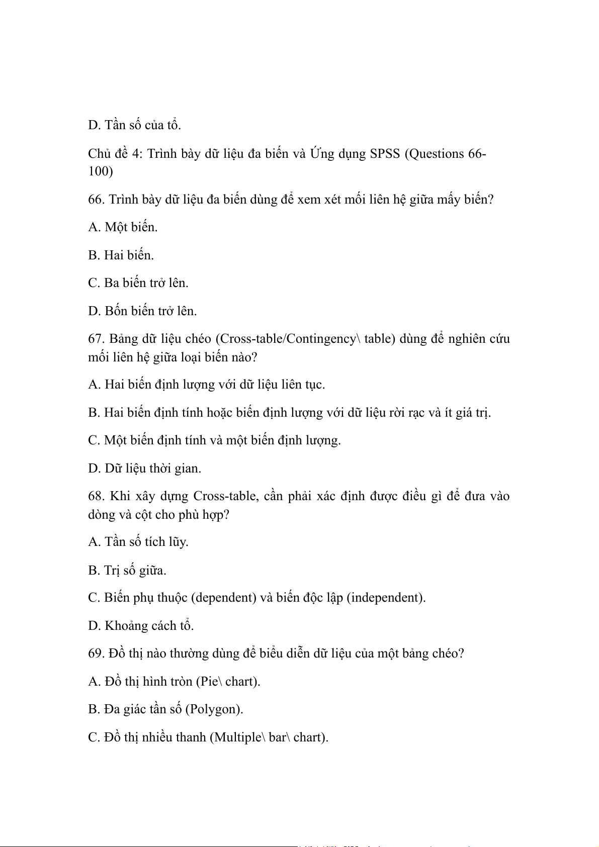Chủ đề 4: Trình bày dữ liệu đa biến và Ứng dụng SPSS (Questions 66- 100)