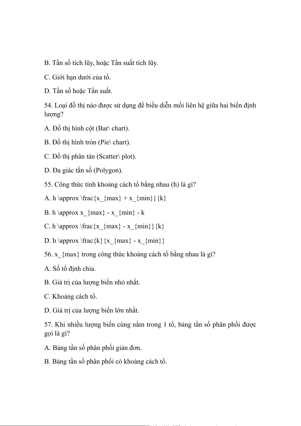 51. Chiều cao của cột trong Histogram biểu thị điều gì? A. Khoảng cách tổ. B. Tần suất (lần).