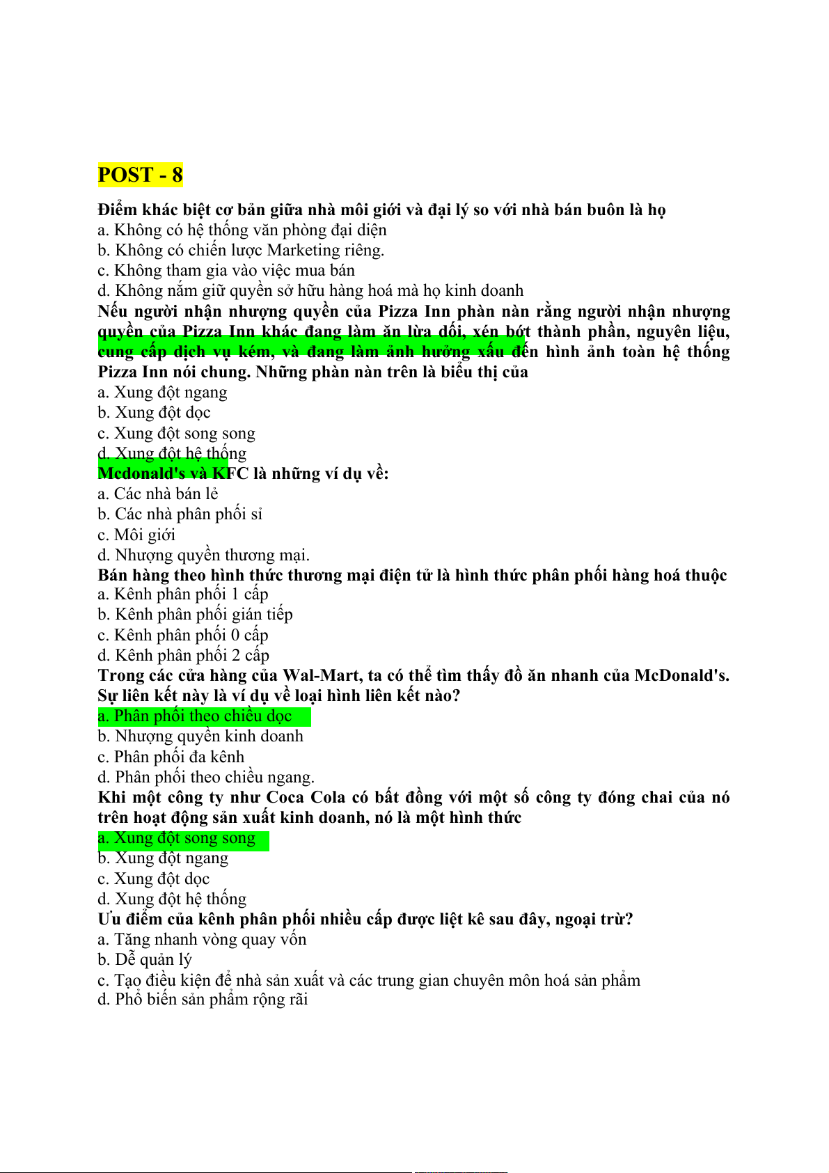 b. Nhượng quyền kinh doanh c. Phân phối đa kênh