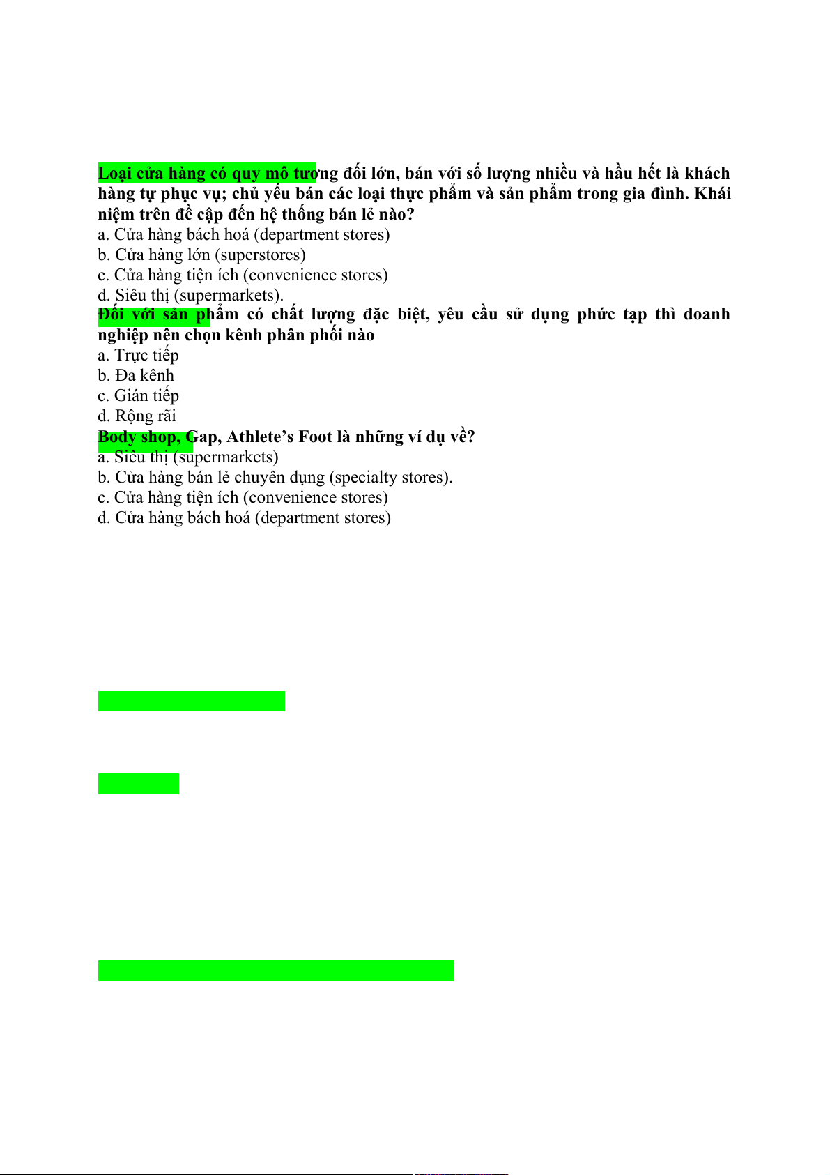 Body shop, Gap, Athlete’s Foot là những ví dụ về?