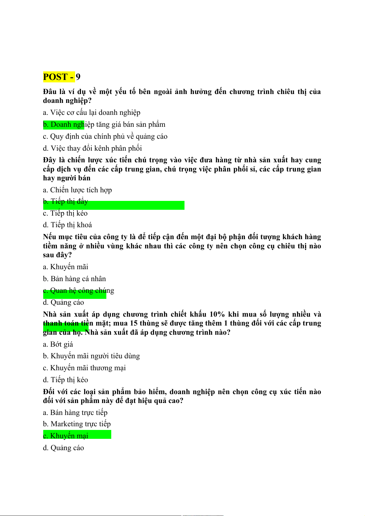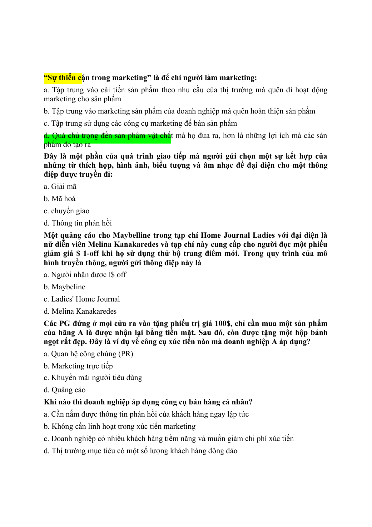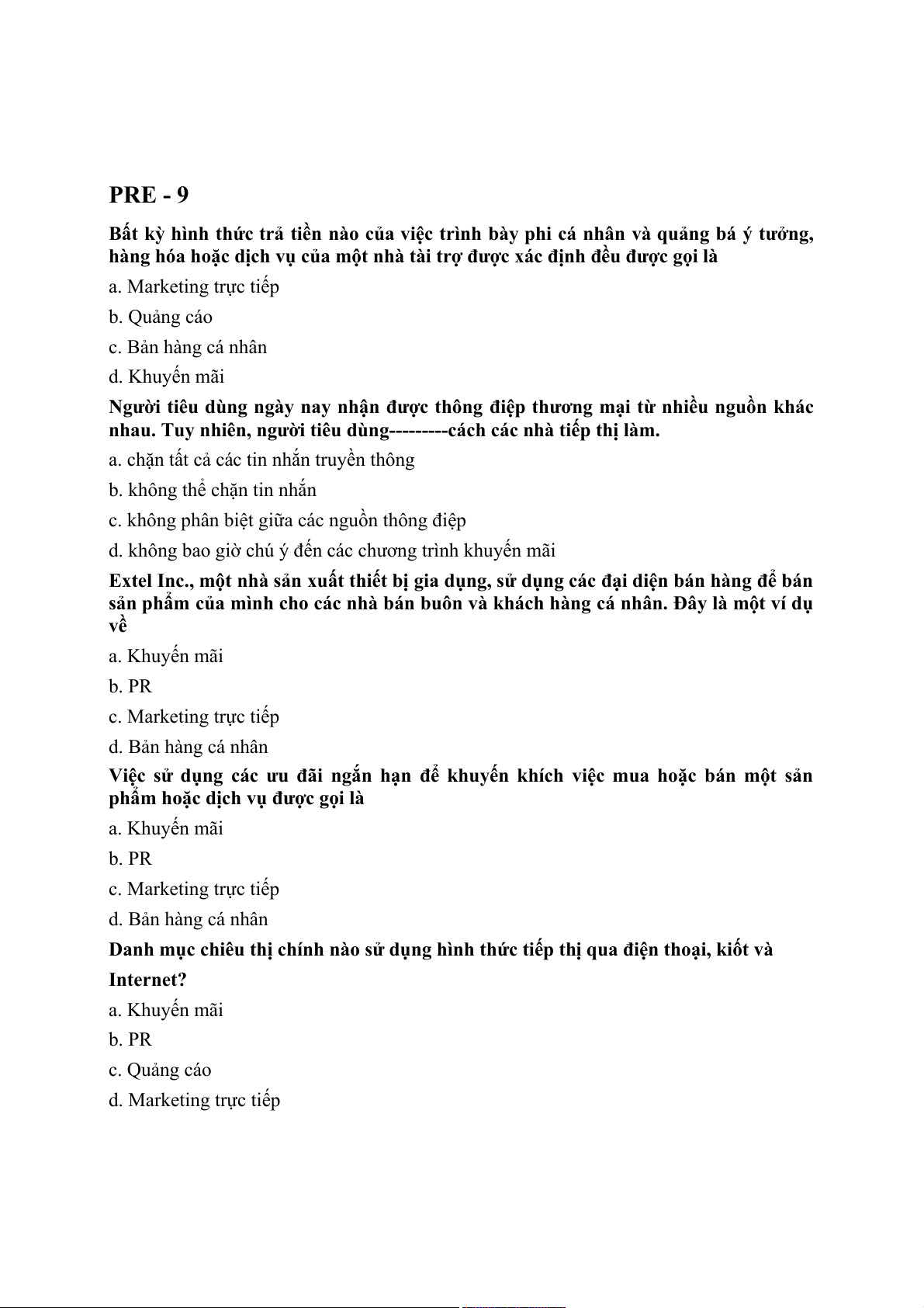 a. Bán hàng trực tiếp b. Marketing trực tiếp c. Khuyến mại d. Quảng cáo