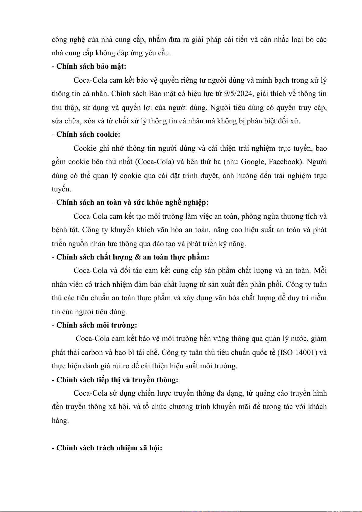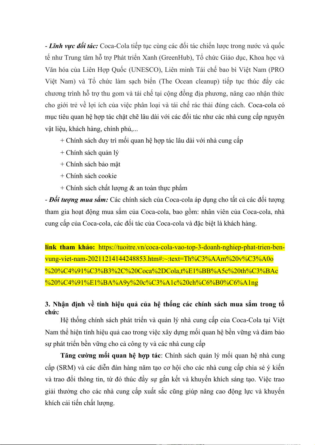 - Chính sách phát triển và quản lý nhà cung cấp của Coca-Cola tại Việt Nam:
