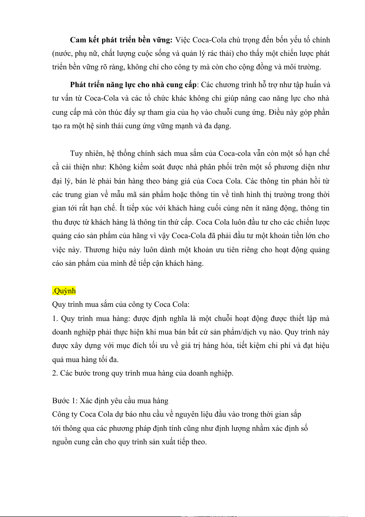 1. Nhận xét về Quy Trình Mua Sắm của Coca-Cola