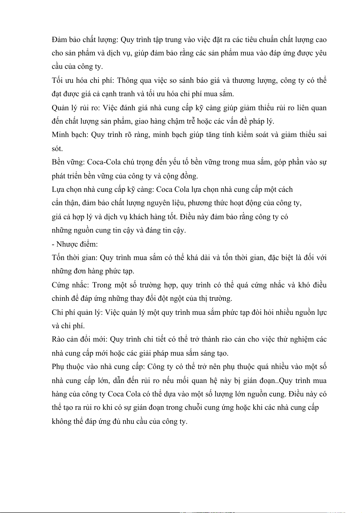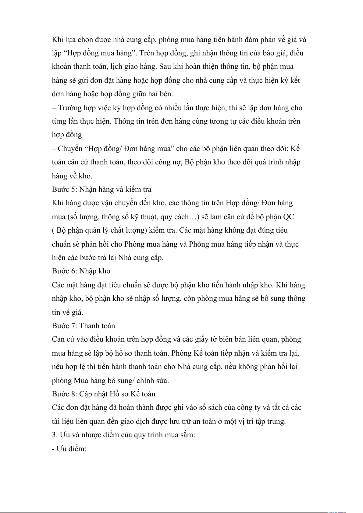 nhà cung cấp lớn, dẫn đến rủi ro nếu mối quan hệ này bị gián đoạn..Quy trình mua