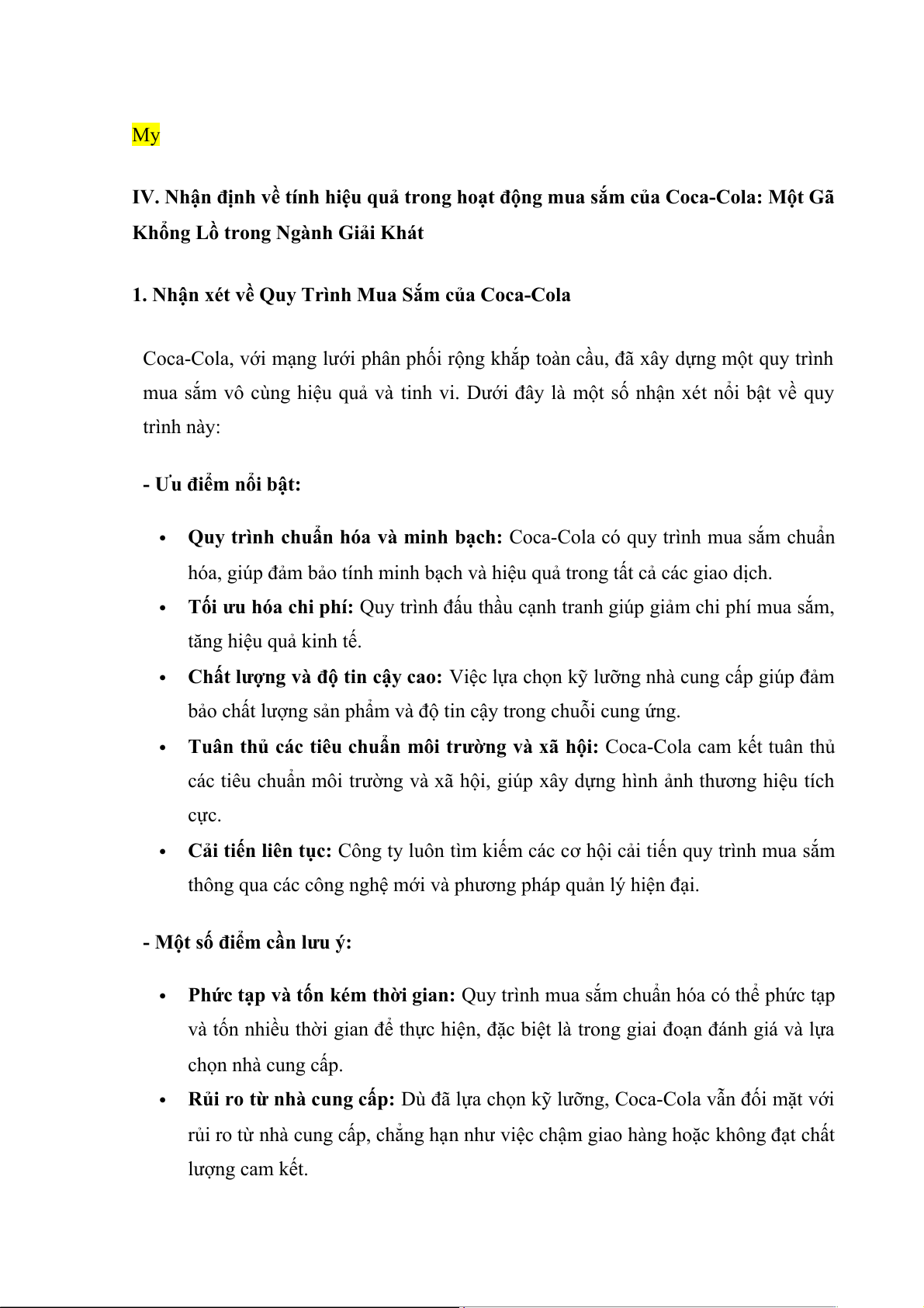 IV. Nhận định về tính hiệu quả trong hoạt động mua sắm của Coca-Cola: Một Gã