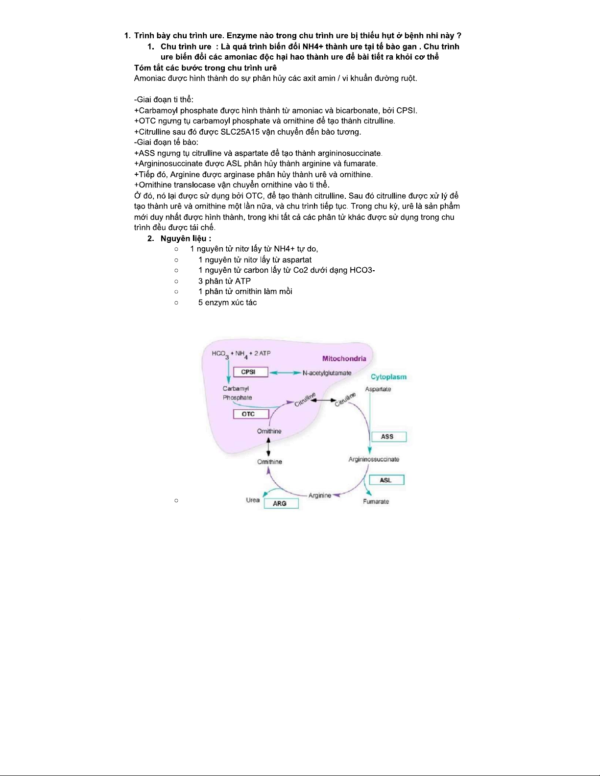 Tổng hợp chu trình ure và thiếu hụt enzyme OTC - SEM 6 S1.2