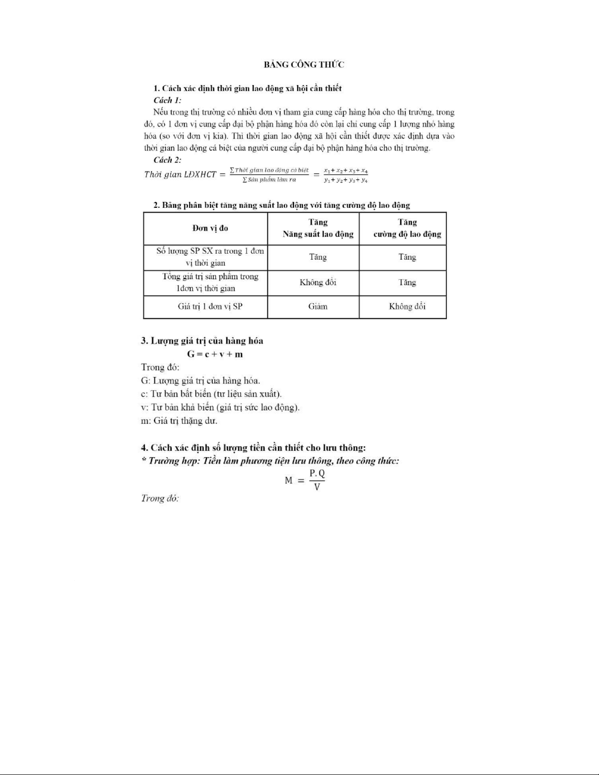 Tổng hợp công thức 365a: xác định thời gian lao động xã hội cần thiết môn Kinh tế chính trị Mác Lênin | Trường Đại học Công nghệ thông tin, Đại học Quốc gia Thành phố Hồ Chí Minh